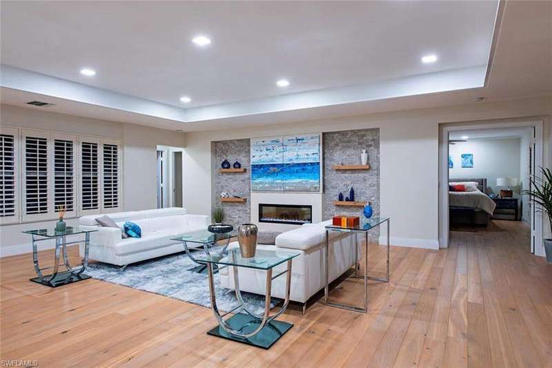 Tucked away in a quiet, four-residence enclave, this beautifully reimagined top-floor 2 bedroom, 2 full bath home places you at the center of everything Olde Naples has to offer-just a short stroll to the beach, the Naples Pier, and the charming boutiques and restaurants of Third Street South. Inside, the home has been completely transformed with a refined, modern aesthetic. Soaring, tray ceilings and an open layout create an inviting sense of space, while oversized windows frame the lush Rodger Park views on one side, complimented with a serene, tropical courtyard and pristine pool on the other. Every element has been curated with care-from rich wide-plank Legno Bastone French white oak hardwood flooring and custom millwork to a striking LED fireplace and a show-stopping kitchen with premium finishes and a generous island for entertaining.