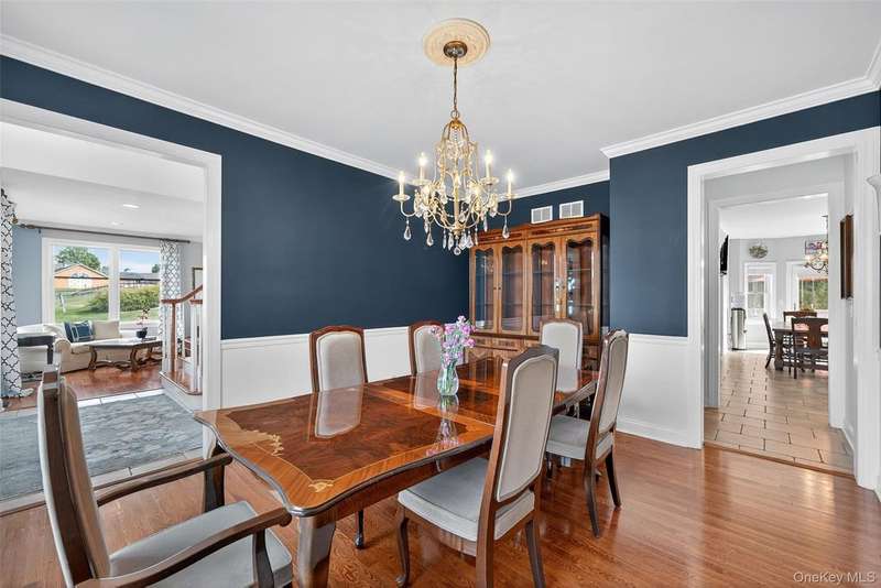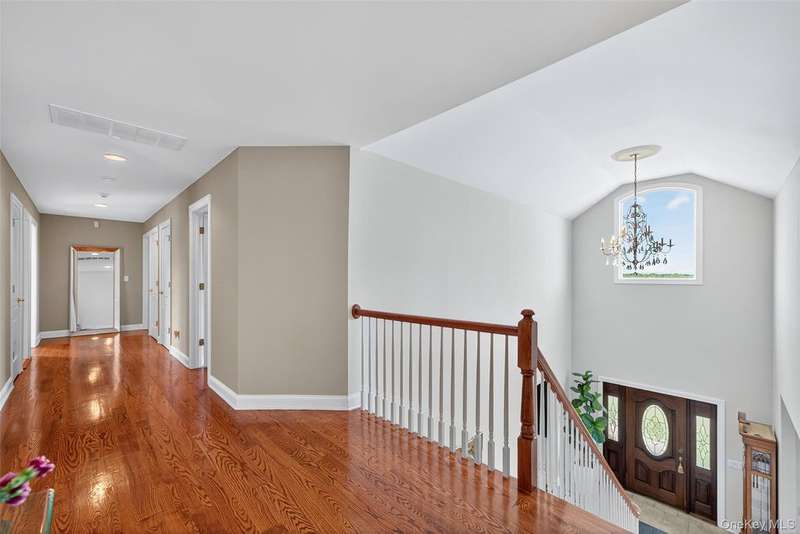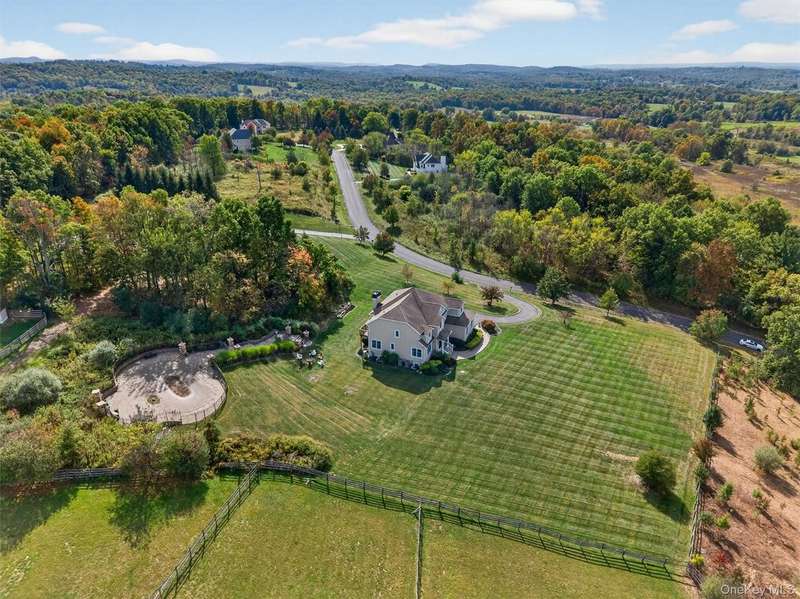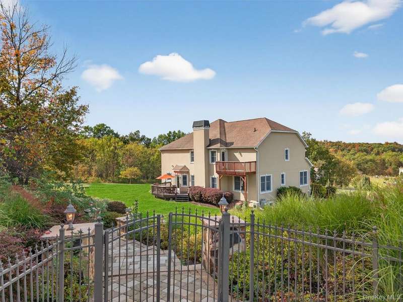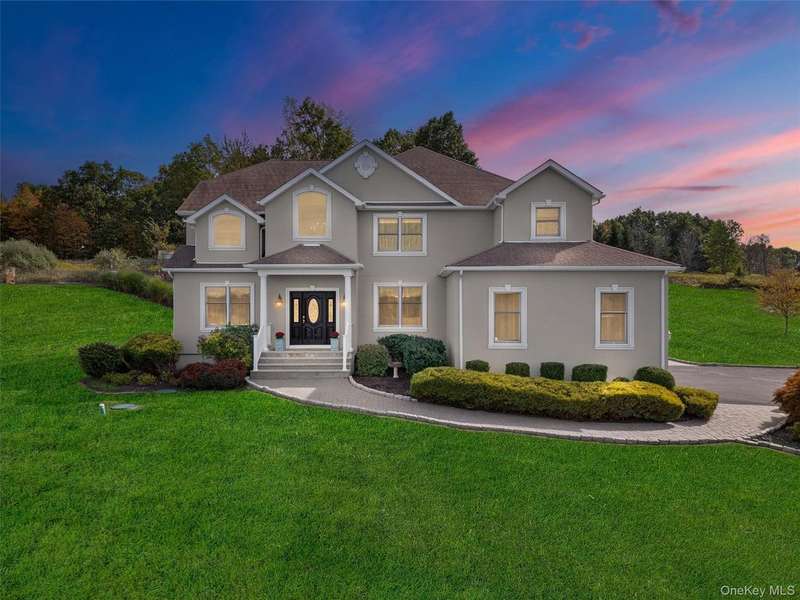 Your Hudson Valley haven?an escape that feels like home. Just 2.6 miles from the Campbell Hall Metro-North train station to NYC, exclusive enclave living awaits in the sought-after neighborhood of Dorian Farms Estates, where every day is perfectly framed by sweeping Shawangunk Mountain vistas, rolling pastures, picturesque equestrian farmland, and fiery Hudson Valley sunsets in the coveted Town of Hamptonburgh. This breathtaking Contemporary residence on 2.1 acres spans an impressive 5,276 square feet of thoughtfully designed living space and exquisite architectural detail throughout. From the moment you arrive, the home makes a lasting impression. A grand two-story foyer with soaring ceilings and a striking staircase sets the stage for the elegance that flows throughout. The formal living room, bathed in natural light, provides a serene retreat?ideal for curling up with a book while soaking in captivating mountain views. French doors lead to a dedicated home office, offering privacy and inspiration for work or study. At the heart of the home, the expansive family room combines comfort and sophistication, with a wood-burning fireplace, and an immersive surround sound system for enjoying music or movie nights. Here, gatherings feel effortless, whether hosting lively celebrations or enjoying a cozy evening by the fire. The gourmet kitchen is a chef's delight, equipped with high-end appliances, double wall oven, a brand-new dishwasher, dining area, and a walk-through butler's pantry that transitions seamlessly to the formal dining room. This flow creates the perfect backdrop for both intimate dinners and elegant entertaining. Step outside from the kitchen onto a spacious deck, where mornings begin with coffee and evenings end with al fresco dining and golden sunsets. Convenience meets function in the laundry/mudroom, featuring abundant cabinetry, a utility sink, and direct outdoor access while the 3-car garage provides seamless entry into the kitchen. A main-level powder room completes this floor. Custom millwork, crown molding, and rich hardwood floors highlight the craftsmanship found throughout. Upstairs, the primary suite is a sanctuary of luxury. A dramatic double-tray ceiling crowns the space, which includes a sitting area with gas fireplace, a private balcony for savoring views, and a spa-inspired ensuite bath boasting a soaking tub, two separate vanities, walk-in shower, water closet, dressing room, and two expansive walk-in closets. Two additional generously sized bedrooms with large closets?one with direct access to the main hall shared bathroom, while a fourth bedroom enjoys its own private ensuite, perfect for guests. An unfinished walk-up attic provides endless storage solutions. Beneath it all, the lower level transforms into an entertainer's dream with a custom mahogany bar, home theater/media room, game room, and flexible space for a gym or den?plus porcelain tile floors that beautifully mimic the warmth and character of hardwood, ample storage, egress, and Bilco door access. Step outside to your private resort-style oasis. A sparkling in-ground saltwater pool glistens in the sunlight, surrounded by lush landscaping, mature trees, and panoramic Hudson Valley views. Host unforgettable BBQs on the patio or gather around the fire pit for starlit evenings of laughter and marshmallow roasting. Additional features include: new dishwasher; newer water softener and filtration system; security system; updated exterior lighting; surround sound system in the family room and home theater; central vacuum; freshly sealed driveway, and more. All this, just minutes from Metro-North's Campbell Hall station to NJ and NYC (2.6 miles), Stewart International Airport (10 miles), major highways?NY-17, NYS-87, I-84, NJ-17, Bear Mountain, apple orchards, wineries, golf courses, Angry Orchid, City Winery, lakes, Appalachian Trail, Garnet Health Medical Center, and more. Home faces North. Reserve your private tour today.