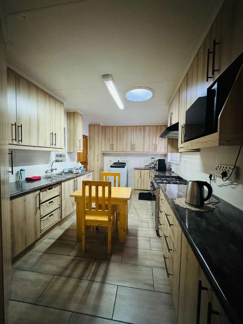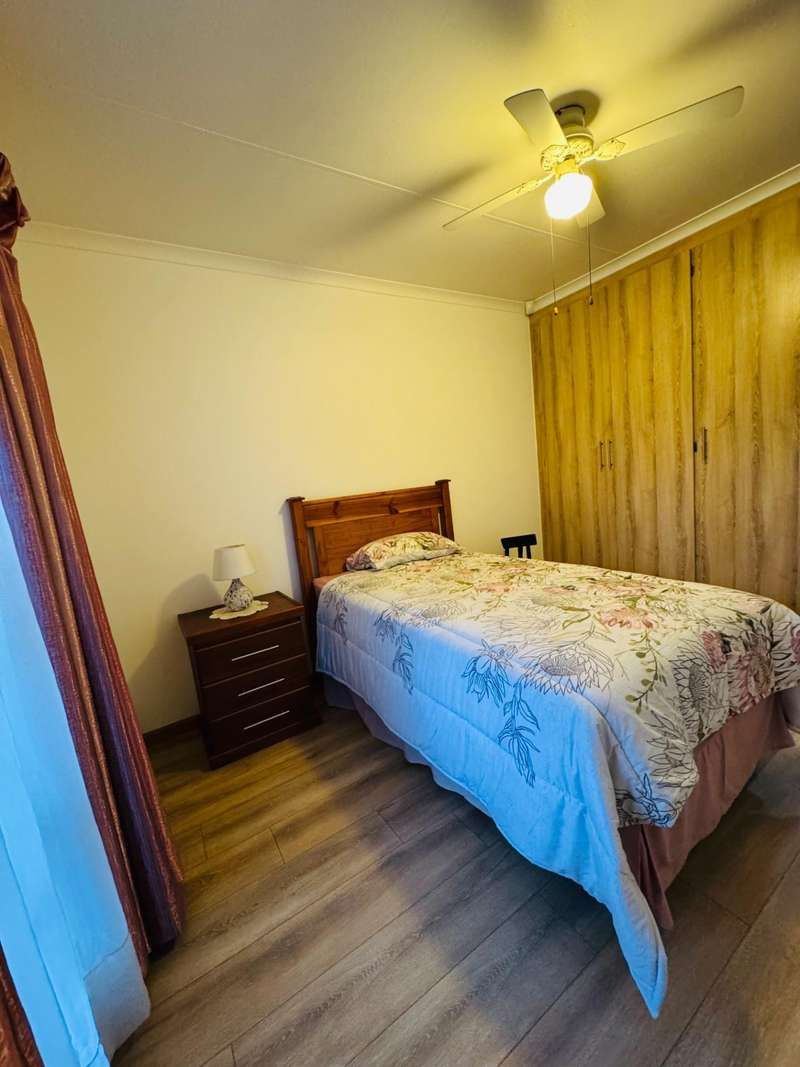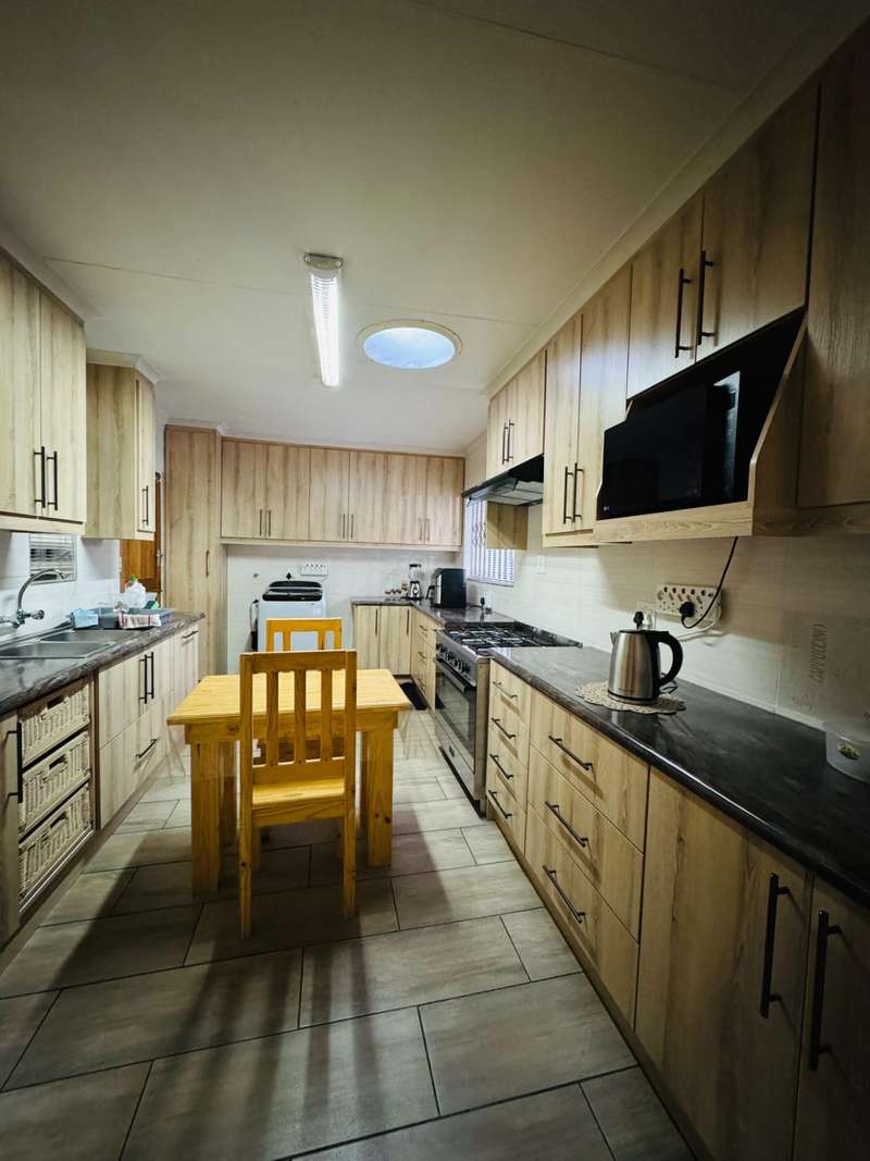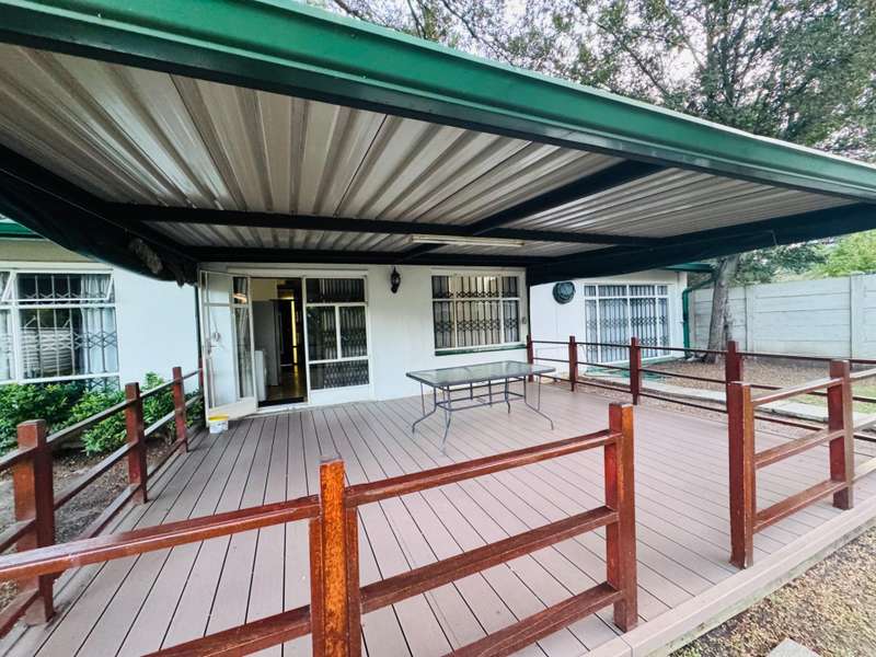 Additional features include a flatlet, ideal for guests or rental income, a carport that accommodates up to three cars, and a JoJo tank for water storage. The property is secured with burglar bars and palisade fencing all around, ensuring peace of mind.