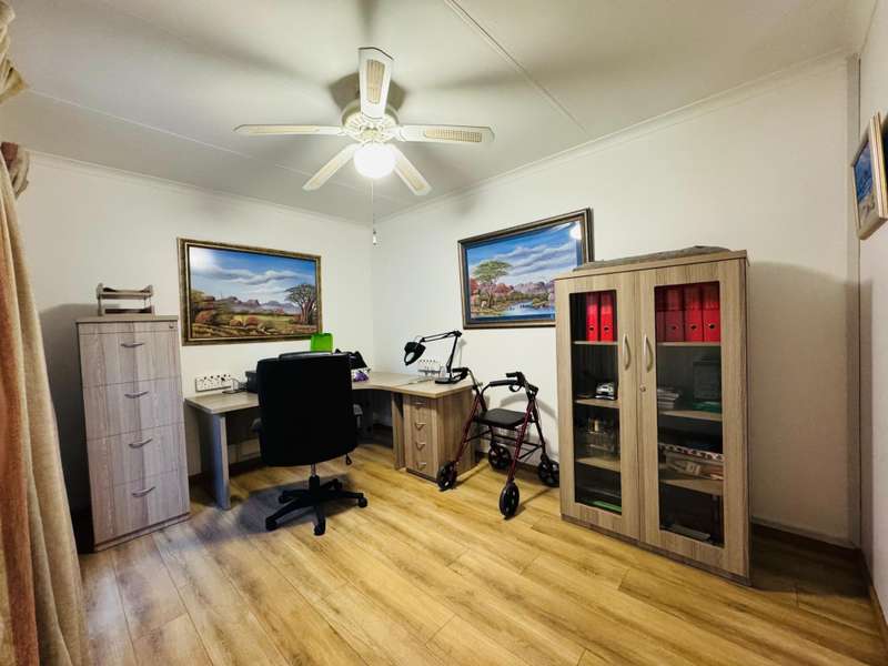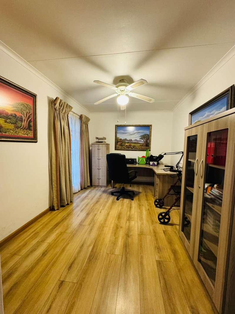 The home features a long passage leading to four well-sized bedrooms, each equipped with newly renovated wardrobes. The main bedroom boasts its own full en-suite bathroom and a private dressing area for added luxury. A dedicated office space makes working from home effortless.