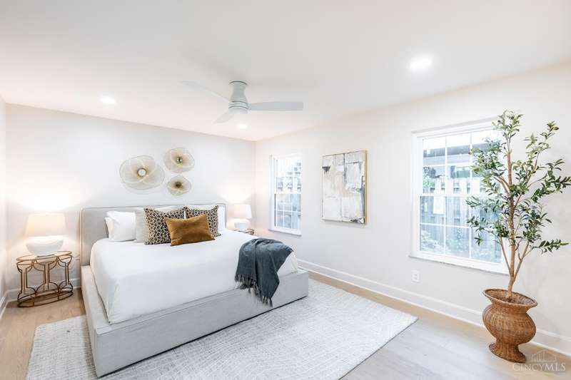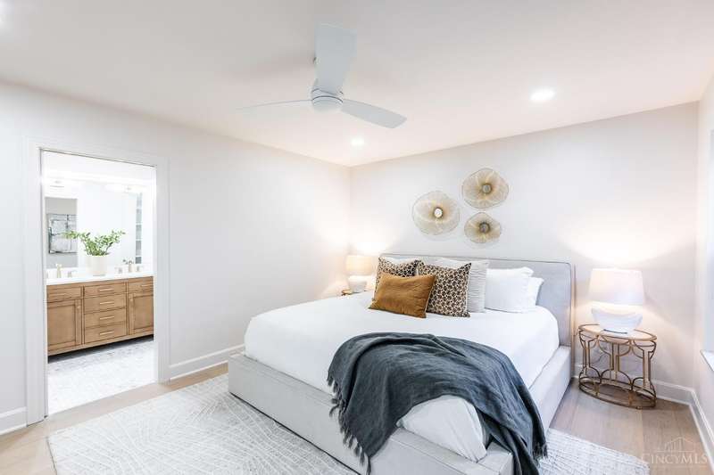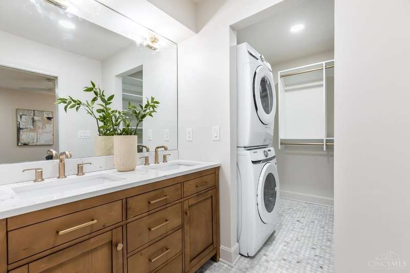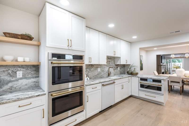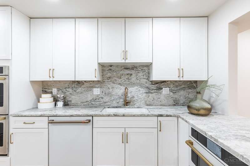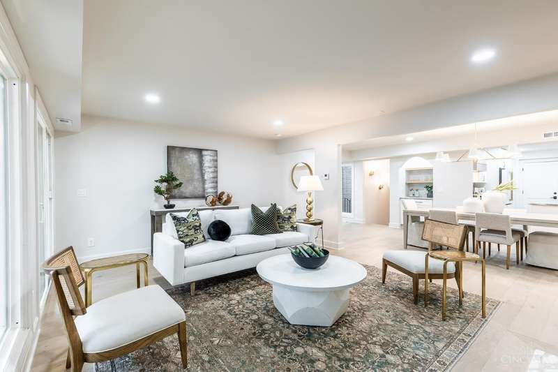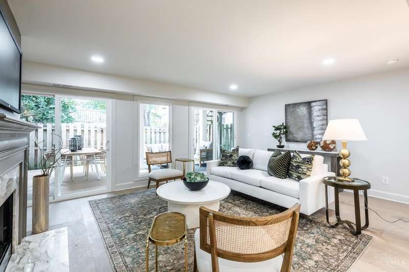 Pending Before Sent. Exquisite, high-end renovation on this open-concept,1 floor living unit offering 3 bedrooms & 3 full baths, thoughtfully designed w/op-quality materials throughout. Main level showcases 7 white oak flooring, gourmet kitchen w/42 soft close cabinetry, GE Cafe appliances, leathered quartz countertops & backsplash. New sliding doors extend living space outdoors, seamlessly blending indoor comfort w/outdoor enjoyment. 2 marble baths serve 2 bedrooms on the 1st floor, while owner's suite includes a walk-in closet & laundry. Finished LL is equally impressive, featuring a spacious family room w/wet bar, 2nd laundry, full bath & add'l bedroom. 1 car garage adds everyday convenience. Every detail has been addressed: dual HVACs, hot water heater, all new windows & doors, updated plumbing & electric to current code. All work permitted & inspected by the City of Cincinnati Bldg Dept, allowing seller to apply for a significant tax abatement for buyer's benefit. Owner/Agent
