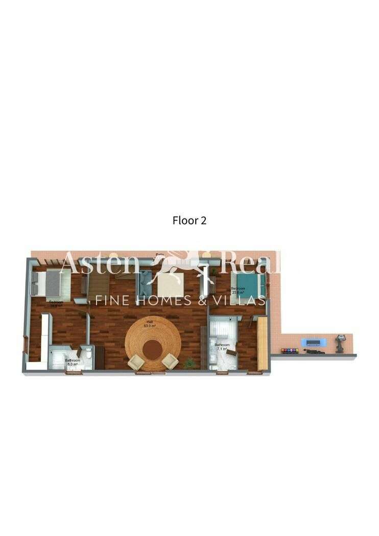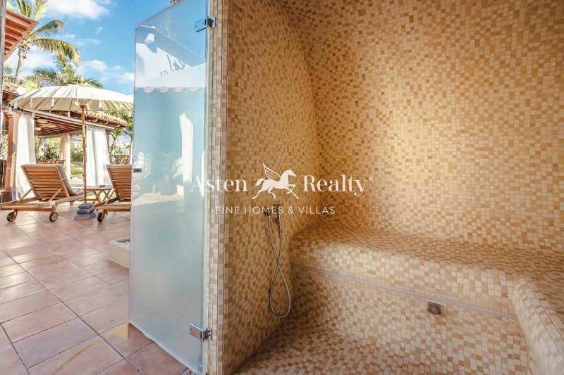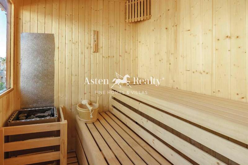 • Wellness area: The villa includes a private gym, sauna, steam bath (hammam), massage room, and jacuzzi, offering complete relaxation facilities.