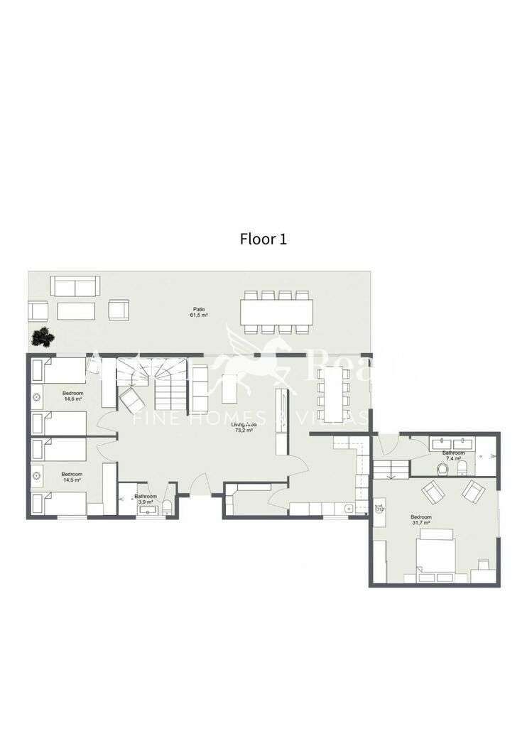 • Plot of 1164 m² with 353 m² of built area, functionally distributed to maximize comfort and privacy.