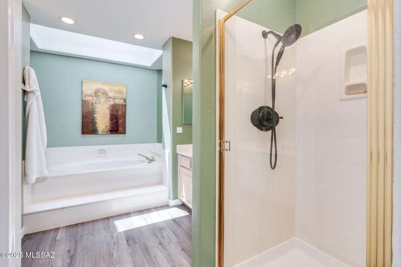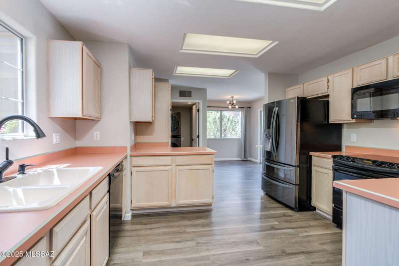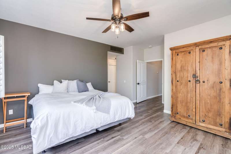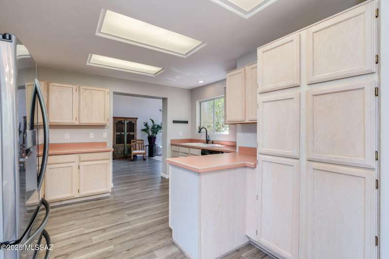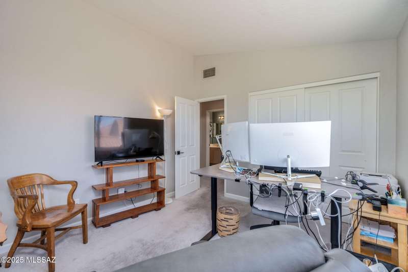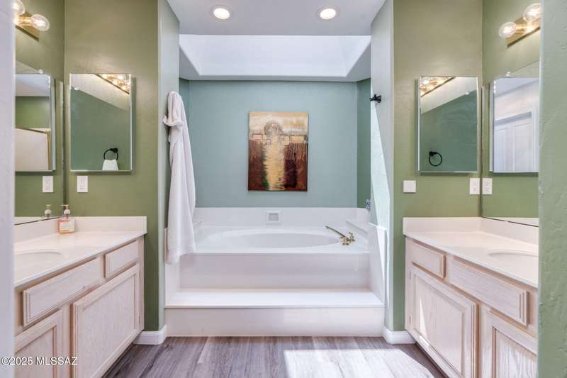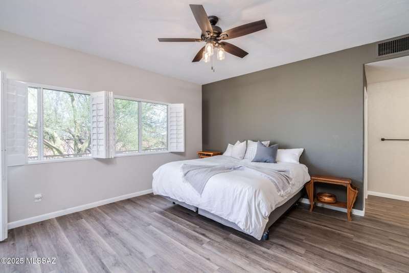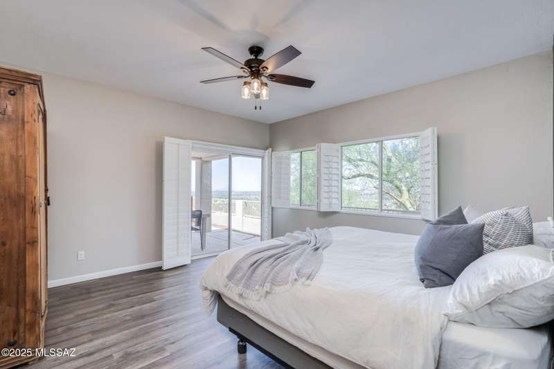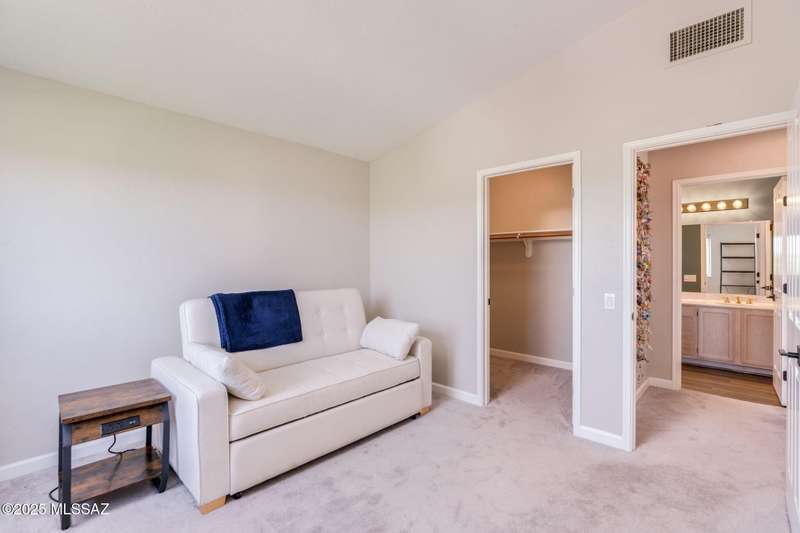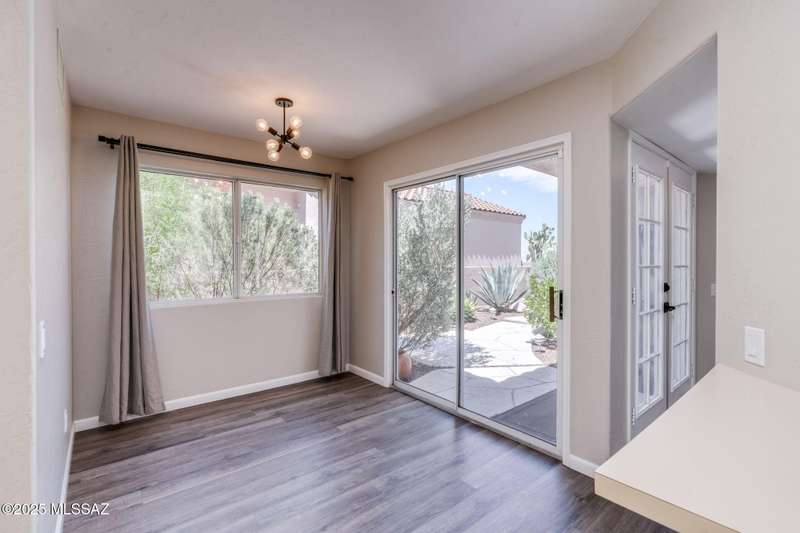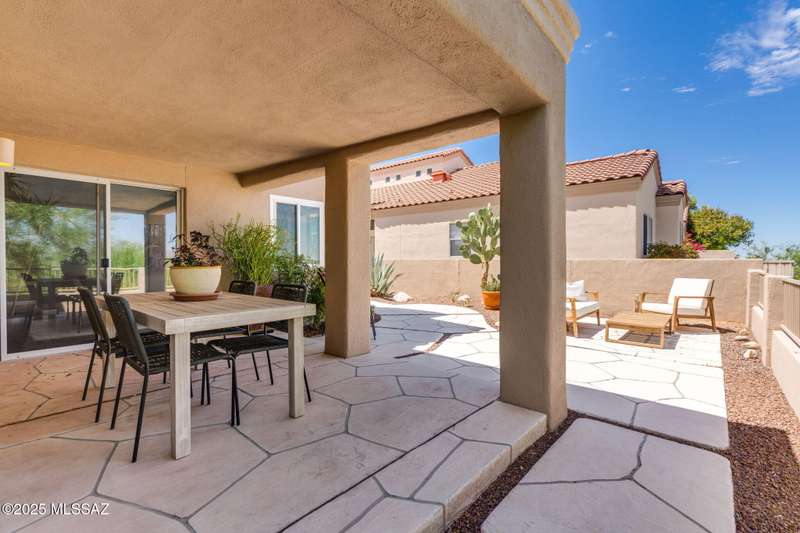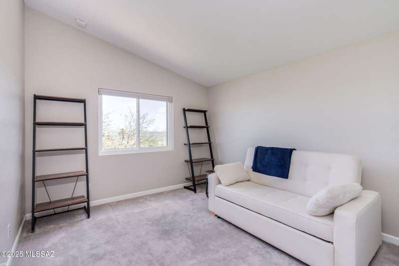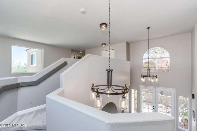 Contemporary 3BD/2.5BA +Den (2,678 sf) residence situated high on THE RIDGE in prestigious, guard gated La Reserve affords ultimate privacy and views. This elegant two-story home overlooks the valley and beyond boasting dramatic views of Pusch Ridge Wilderness plus awe-inspiring sunsets, valley lights and distant mountain vistas. Charming, gated courtyard flows to a neutral and bright floor plan showcasing soaring & vaulted ceilings, high arched windows, elegant French doors, wood-tone ceramic plank tile, plus dramatic floor-to-ceiling fireplace surround in living/dining room. Spacious den off kitchen opens to a private patio to enjoy your morning coffee. Extended Chef's kitchen with sleek black appliances and abundant storage offers a dining nook opening to a flagstone walkway to rear