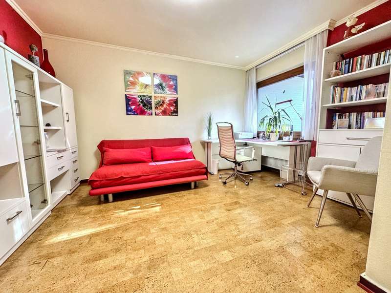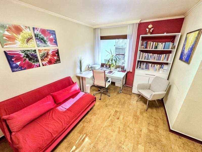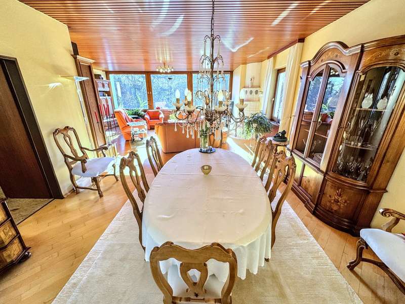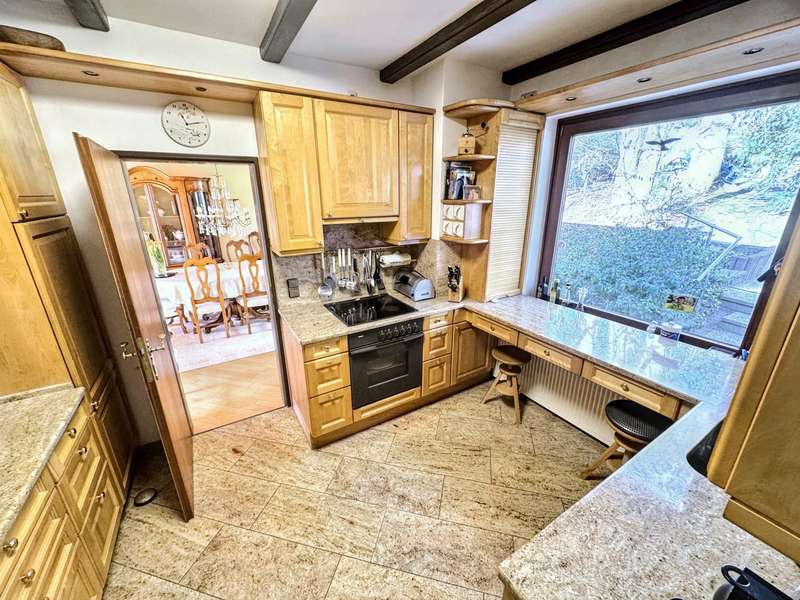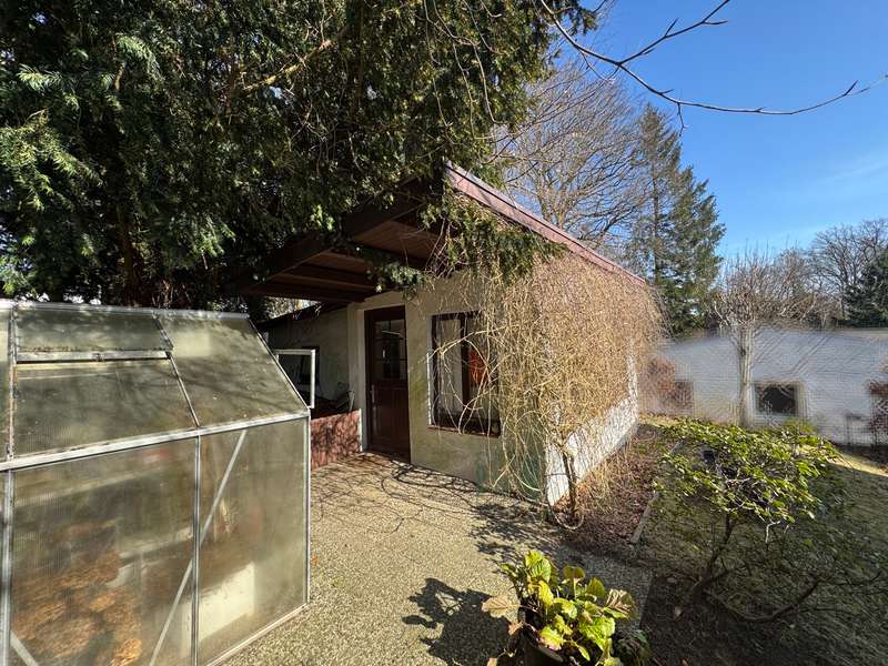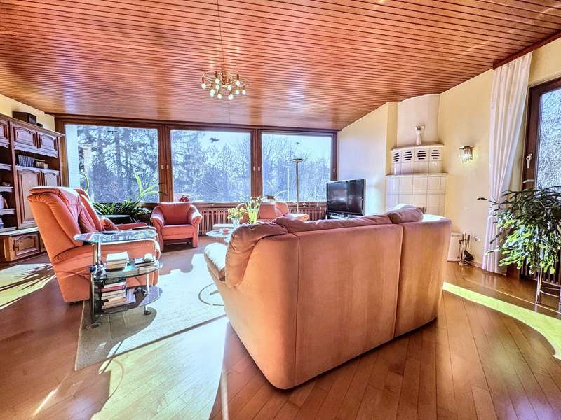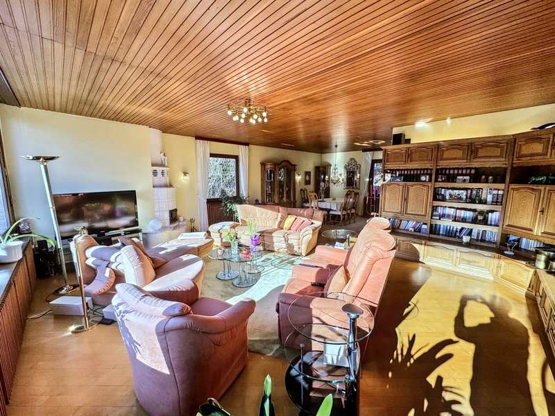 Thank you for your interest in this property. Please note that inquiries via the portals will only be processed if a telephone number is provided where you can be reached during the day. After downloading the exposé, we will send you a link to the 360-degree viewing so that you can get a first impression of the house. This charming detached house from 1972 with a living space of approx. 190 m², spread over two levels, is situated on a spacious plot at the top of the slope in a quiet location. The house offers a wide range of possible uses. The entrance area is located in the basement of the house, from which a spacious room leads off to the left. This room, which is currently used as an office, offers direct access to a spacious, partially covered terrace - ideal for relaxing outdoors. There are also two further bedrooms, a separate WC and a shower on this floor. The remaining rooms are used as storage and cellar rooms and offer plenty of storage space. On the upper floor, a spacious living room of 54 m² awaits you with a fantastic view of the natural surroundings. Adjacent to the living room is the kitchen. There is also a bedroom with its own en suite bathroom and a spacious loggia where you can enjoy quiet hours. The property also offers a massive outbuilding at the rear, which can be used as storage space or is inviting for parties and social gatherings in summer. In the lower part of the plot there is the possibility of building another detached house or a semi-detached house. There is no limit to the number of residential units and the GRZ is 0.2. This property combines a lot of charm with a lot of potential. The existing house offers generous living space, while the building plot is ideally suited for a further residential project. Ideal for families, multi-generational living or as an investment property - a rare opportunity in a sought-after location.