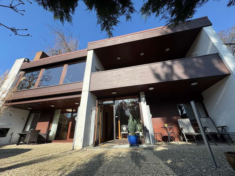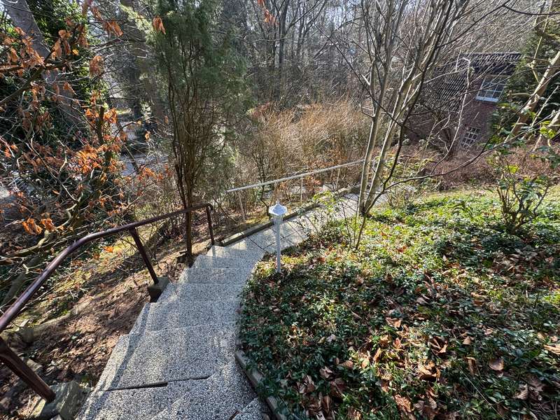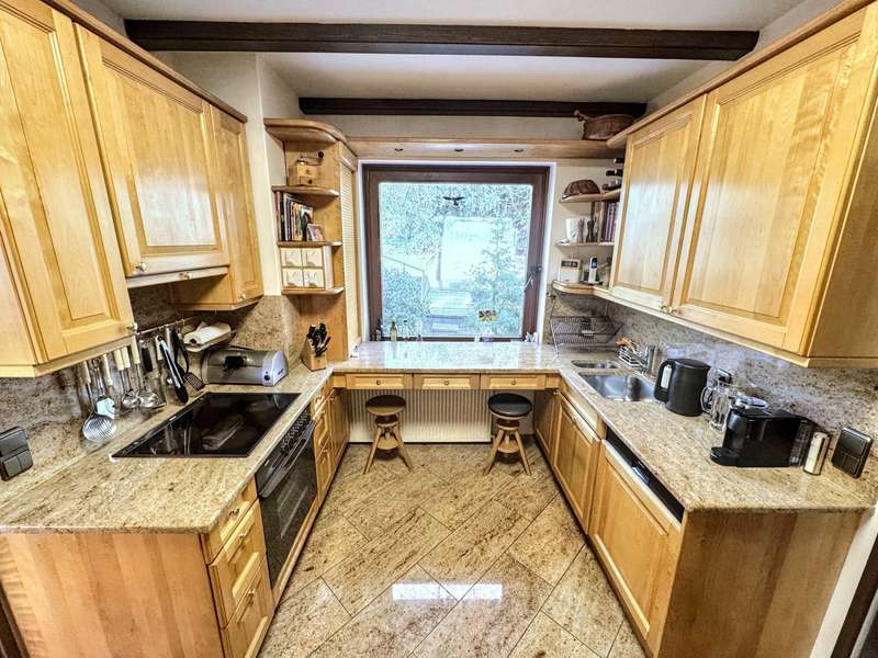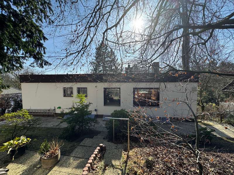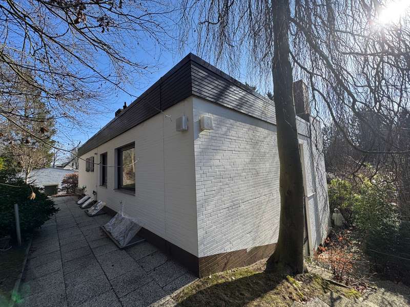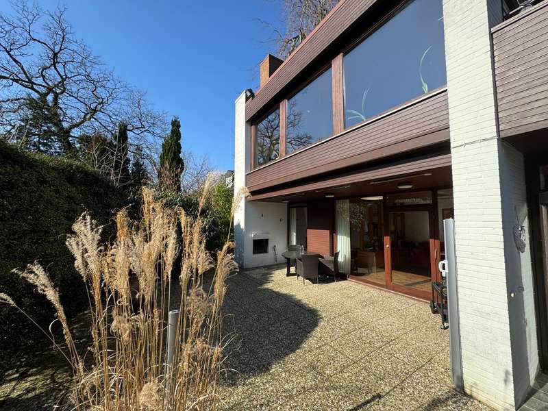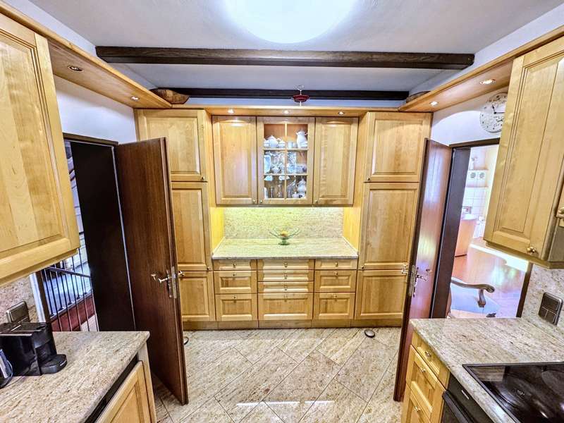 Thank you for your interest in this property. Please note that inquiries via the portals will only be processed if a telephone number is provided where you can be reached during the day. After downloading the exposé, we will send you a link to the 360-degree viewing so that you can get a first impression of the house. This charming detached house from 1972 with a living space of approx. 190 m², spread over two levels, is situated on a spacious plot at the top of the slope in a quiet location. The house offers a wide range of possible uses. The entrance area is located in the basement of the house, from which a spacious room leads off to the left. This room, which is currently used as an office, offers direct access to a spacious, partially covered terrace - ideal for relaxing outdoors. There are also two further bedrooms, a separate WC and a shower on this floor. The remaining rooms are used as storage and cellar rooms and offer plenty of storage space. On the upper floor, a spacious living room of 54 m² awaits you with a fantastic view of the natural surroundings. Adjacent to the living room is the kitchen. There is also a bedroom with its own en suite bathroom and a spacious loggia where you can enjoy quiet hours. The property also offers a massive outbuilding at the rear, which can be used as storage space or is inviting for parties and social gatherings in summer. In the lower part of the plot there is the possibility of building another detached house or a semi-detached house. There is no limit to the number of residential units and the GRZ is 0.2. This property combines a lot of charm with a lot of potential. The existing house offers generous living space, while the building plot is ideally suited for a further residential project. Ideal for families, multi-generational living or as an investment property - a rare opportunity in a sought-after location.
