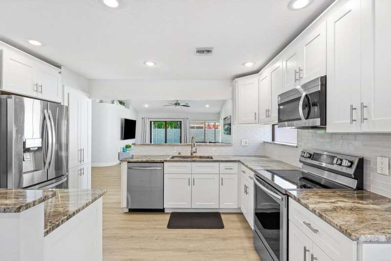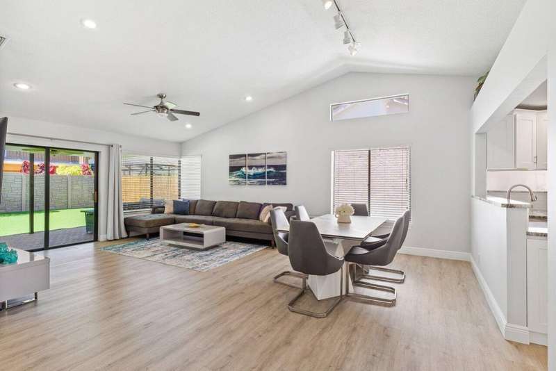 GORGEOUS, CLEAN, LIGHT AND BRIGHT AND COMPLETLEY UPDATED SINGLE STORY HOME IN MISSION BAY! Open floor plan with large windows overlooking the large open garden area with artificial turf and fully fenced in yard. Kitchen has quartz counter tops and stainless-steel appliances. Walk or bike ride to the vibrant resort style clubhouse offering free fitness classes, fitness room, clubhouse, sauna, basketball, tennis, multipurpose field, pickleball, large lakeside pool and kids pool all included in your rent! Lawn care included in rent as well.