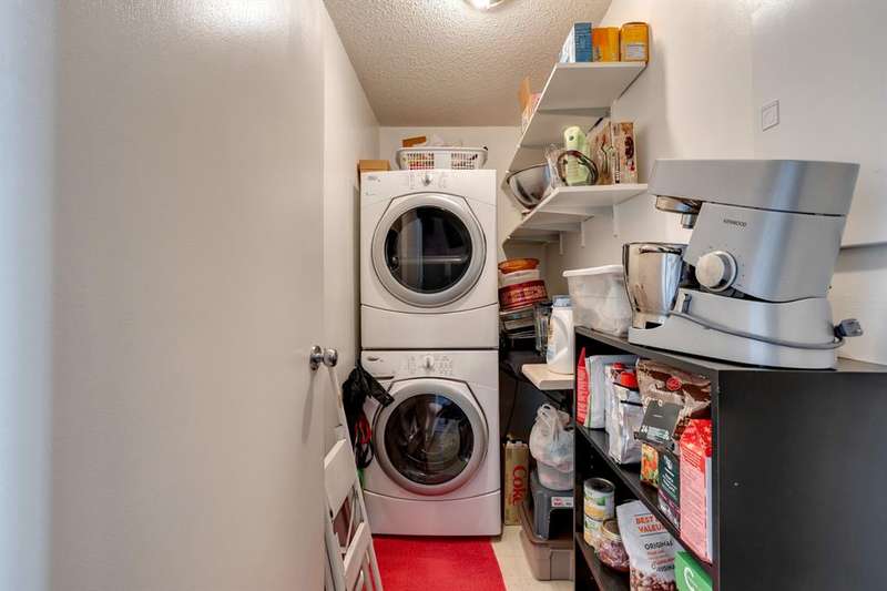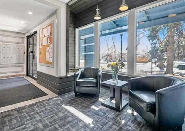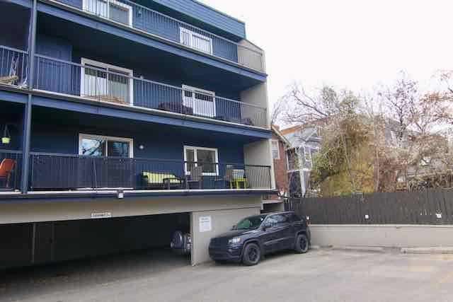 4 Storey Walkup building in the heart of Crescent Heights, just up the hill and overlooking downtown Calgary. This is one of the most beautiful areas in the City with mature trees, parks, restaurants, coffee shops and easy access to the transit system. This 2 bedroom unit has 828 sq', a spacious living room, cozy kitchen, in suite laundry, expansive deck and covered parking. There is only a half flight of stairs up to this unit from the entrance. There is a storage locker on the same floor. Well kept immaculate home. Bike storage and a roof top patio with outstanding city views. Pet friendly complex, 2 dogs or 2 cats or one of each allowed. Off leash park down at the end of the block. One Parking pass available from City of Calgary for $100/mth for street parking, but not where time restrictions are posted.