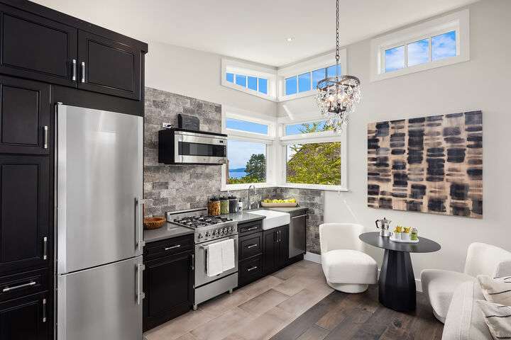 This one will steal your heart! Tucked into coveted Carleton Park, this 1925 French Tudor has been reimagined with a level of craftsmanship rarely seen today. From the stone-accented façade and gated front entry to the rich hardwoods and protected Sound views, every inch feels intentional. The detached ADU over the new garage is every bit as beautiful as the main residence. Step outside and you’ll find yourself in a private in-city oasis with lush landscaping, water features, and a multi-zone irrigation system that create a park-like backdrop for elegant dinner parties, cocktails on the lawn, or quiet evenings at home. And when it’s time to move indoors, a fully-integrated home theatre awaits for the ultimate movie-night experience