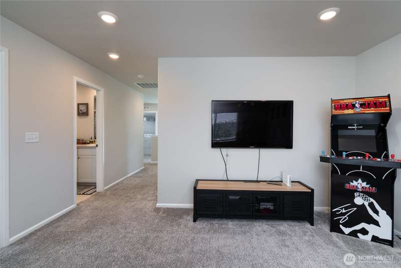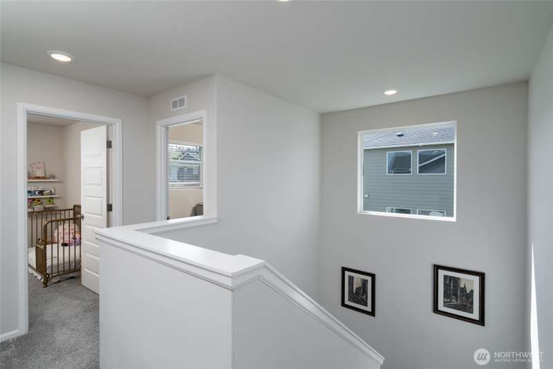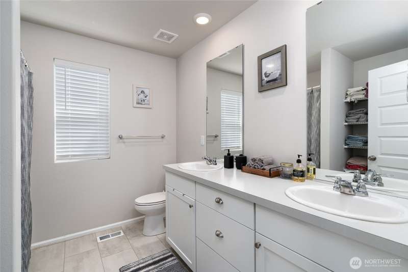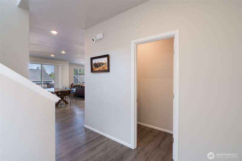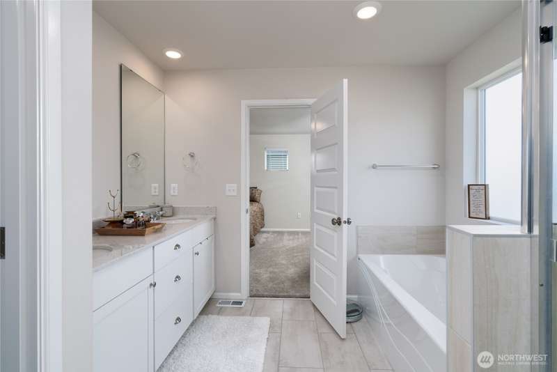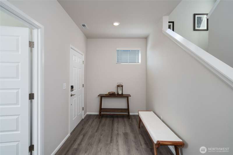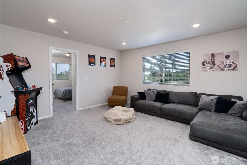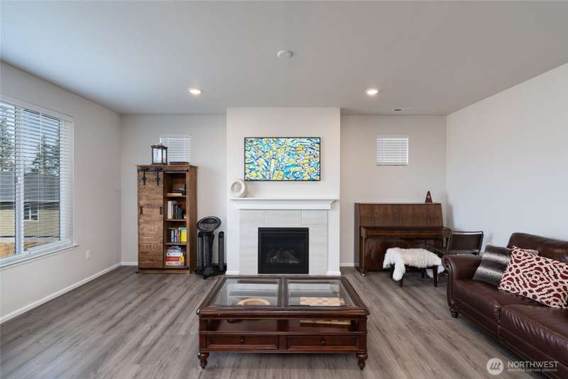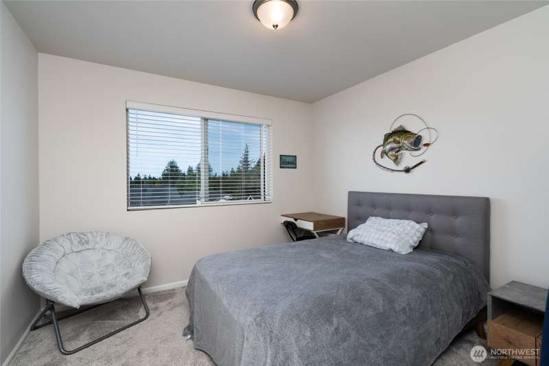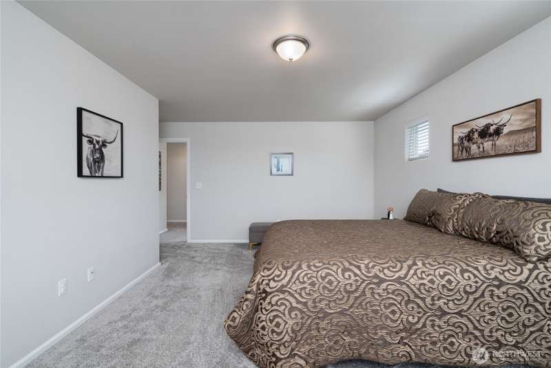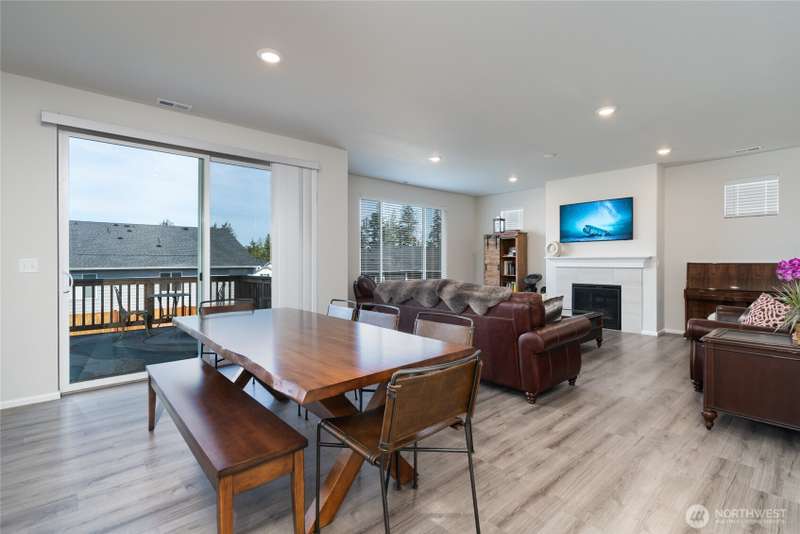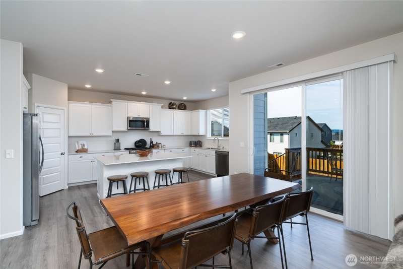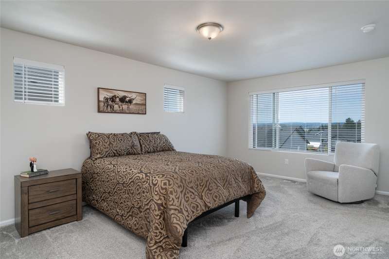 Chandler's Reserve in Stanwood location. The "Stevenson" floor plan with 3- car garage, is a spacious 2700 sq ft floor plan designed for modern living, with a convenient first floor office and open layout among the well equipped kitchen, Great Room and dining area. Upstairs is a bonus room surrounded by all 4 bedrooms, including the owner's suite with spa-like bathroom and walk-in closet. Interior features include hardwood on the main floor, quartz countertops in the kitchen & primary suite, dishwasher, microwave, oven, side by side refer and blinds. Backyard features deck off the kitchen with stairs to fully fenced extra large flat yard with new patio and sitting wall, perfect for entertaining. Garage has dedicated outlet for EV.