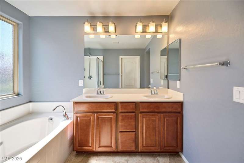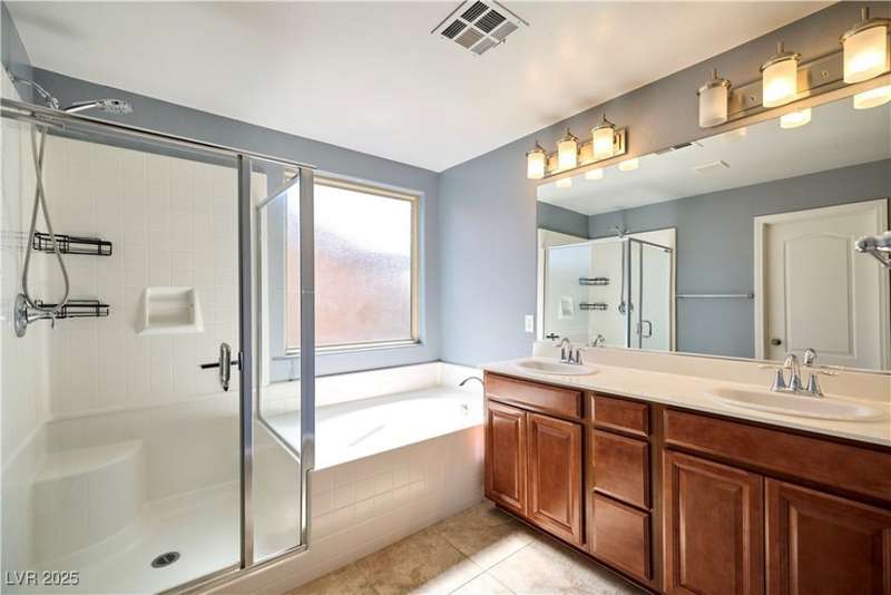 Discover this stunning 2-story home in the gated Arbor Glen community of Providence, Las Vegas. Built in 2015, this 1,789 sq ft residence features 3 bedrooms, 2.5 baths, and a 2-car garage. The versatile layout includes a formal dining or family room at the entrance with a custom built-in bookshelf, leading to a fantastic open concept kitchen/living room area. The kitchen features an island, granite countertops, and a large double sink, opening to an oversized living room. The expansive primary suite offers two walk-in closets and an ensuite bath with dual sinks, separate tub, and shower. Additional amenities include a water softener system, ceiling fans in all bedrooms and living areas, security doors, and custom window tinting on lower-level windows.