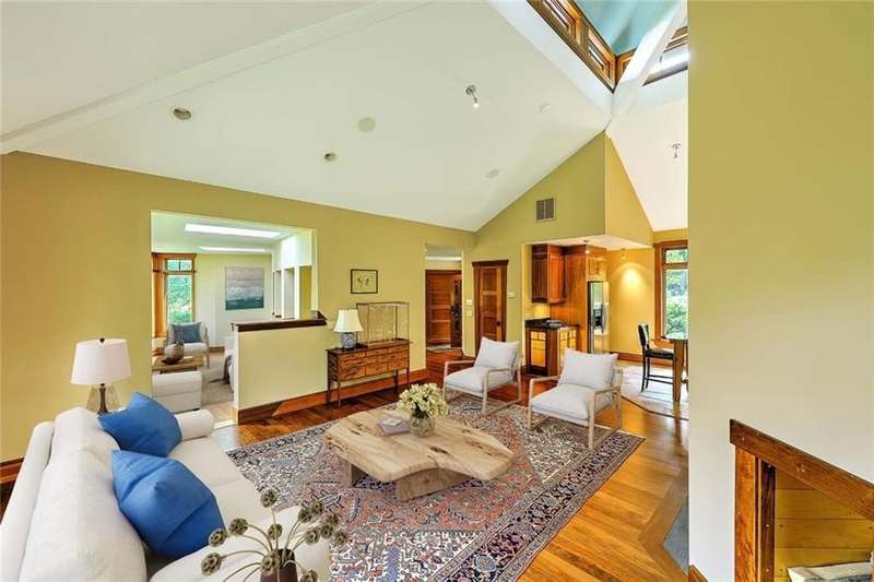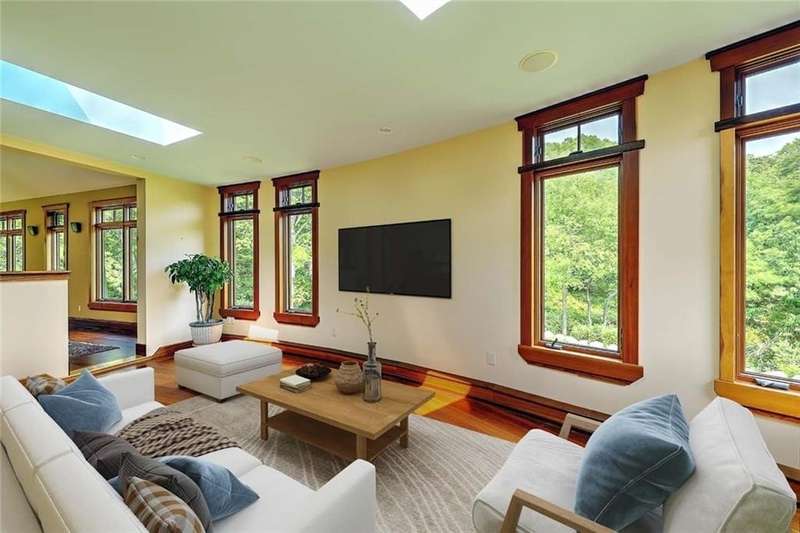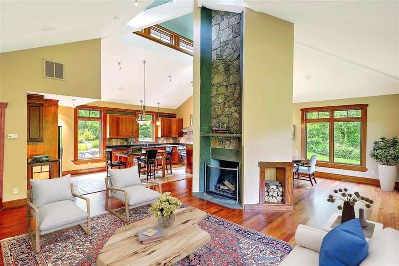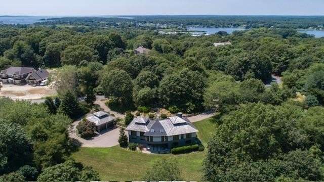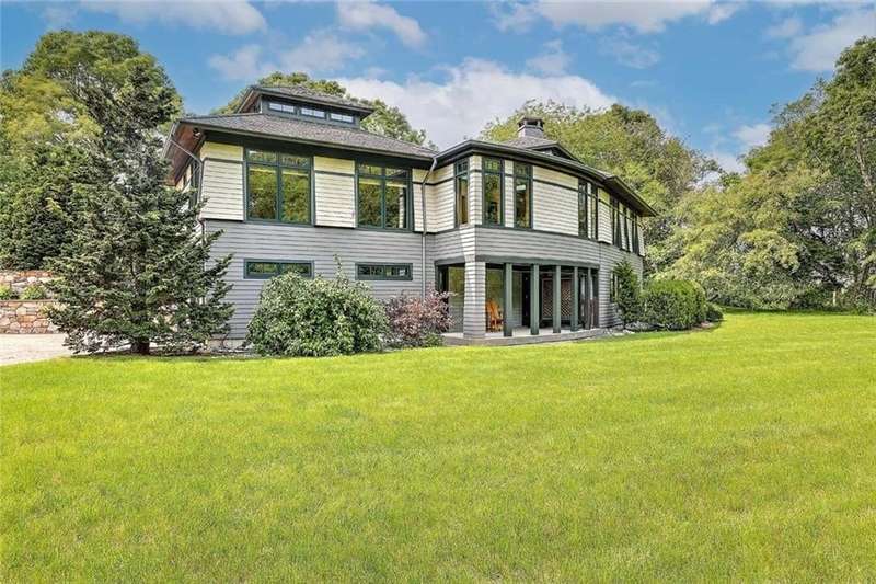 This custom-built Contemporary home designed by the world-famous Centerbrook Architects offers an exclusive retreat in the gated No Bottom Pond community. Highlights include open space, 2 tennis courts, and protected privacy by a small hill with a stone terrace and fire pit to take in the beautiful starry night sky. With 3 bedrooms, 2.5 baths, plus 3,213 sq. ft. of living space on a sprawling 1-acre lot, this residence is an ideal coastal retreat! The living room, media room, dining room, and kitchen feature cathedral ceilings, while the soaring stone fireplace creates an inviting, open atmosphere. The primary suite & bath are secluded on the mail level as well for ease and comfort. An integral 2- car garage includes water facilities adjacent to rough plumbing for a possible full 4th bath. Across the driveway find a large separate outbuilding with another 2-car garage, workspace, a loft, & storage area lending to another possible living space! The property is equally located between Westerly, with it's municipal facilities including a state run airport and Amtrak train station and the quaint village of Watch Hill, with it's iconic shops & restaurants plus beautiful beaches right on the Atlantic Ocean! Please make an appointment to see this very special offering.!
