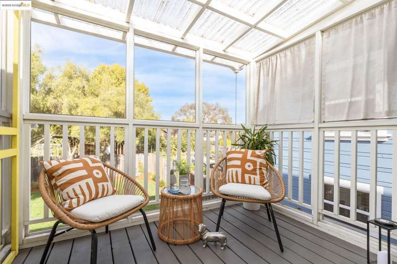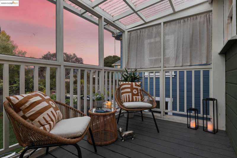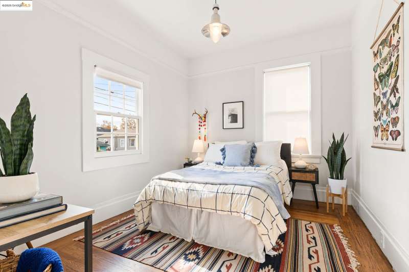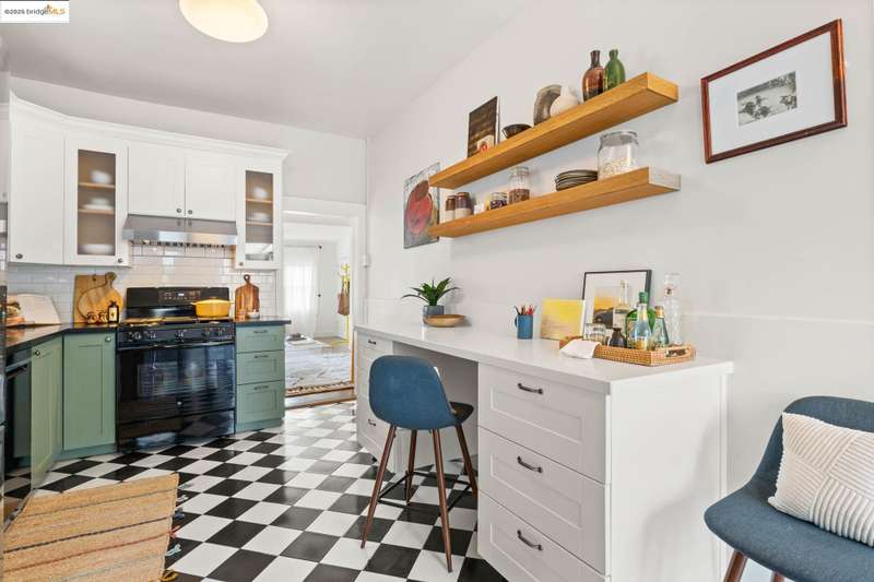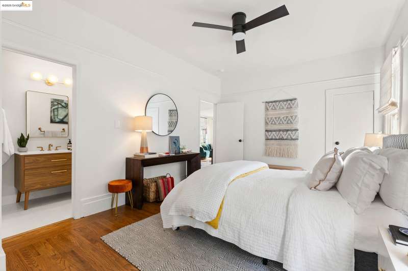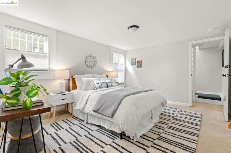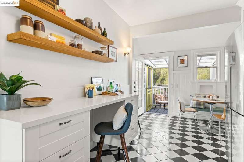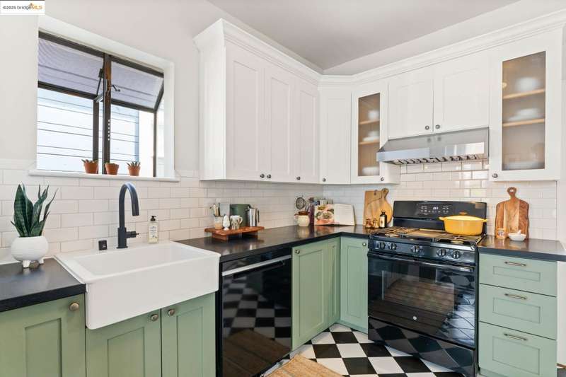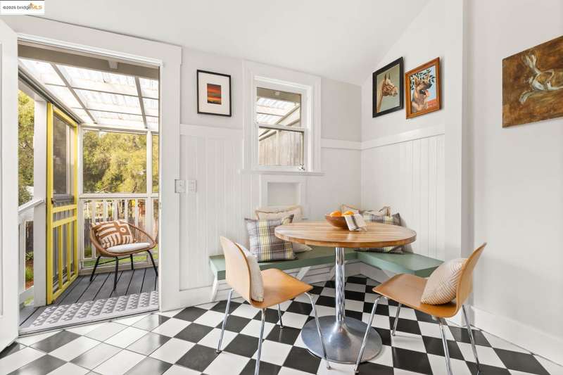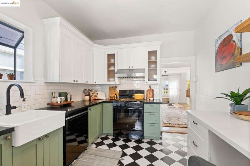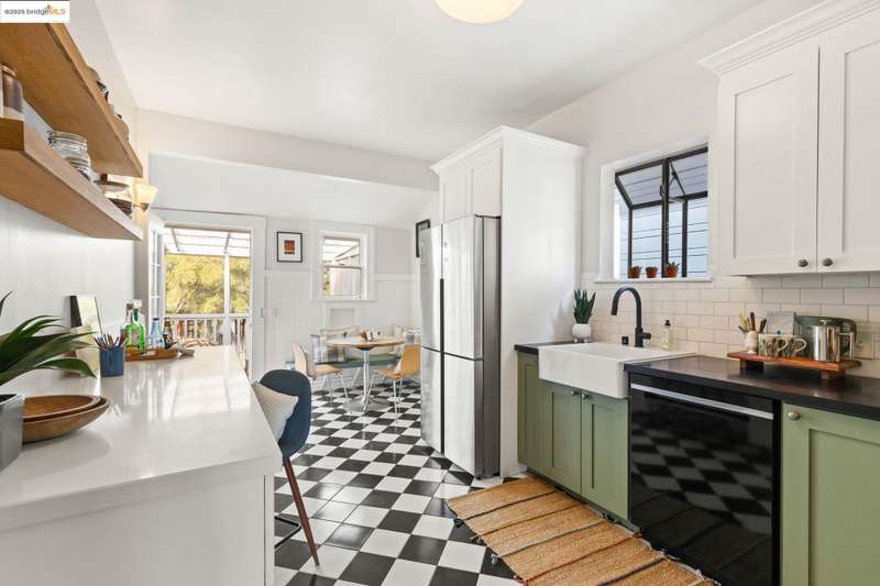 Welcome to 954 46th Street, a beautifully updated California bungalow blending timeless charm with modern style. The rich green faade with crisp white trim and lush, mature landscaping sets the tone. Inside, sunlight fills the oversized living area, highlighting beautiful wood floors. Two spacious bedrooms boast tall ceilings and plenty of windows! Conveniently located, the gorgeously remodeled bath features Pottery Barn vanity, Fireclay tile and Brizo faucet. The kitchen impresses with green and white cabinetry, stone counters, checkerboard floors, built-in desk, and eat-in area that opens to the backyard. Enjoy a screened-in deck, flat yard with large grassy lawn, and patio for outdoor dining and entertaining. The finished lower level offers multiple spaces that can be used for guests, media room, office, gym. Downstairs, you will also find a bath and kitchenette. Attached garage with interior access. Modern touches include solar panels, Nest system, Tesla car charger. Sidewalk & sewer compliant! Prime location near Lower Rockridge, Temescal, and Emeryvilleclose to dining, shops, and BART, commuting options. Temescal Community Garden is one block away. With a Bikescore® of 99 and a Walkscore® of 89, what a wonderful place to call home.
