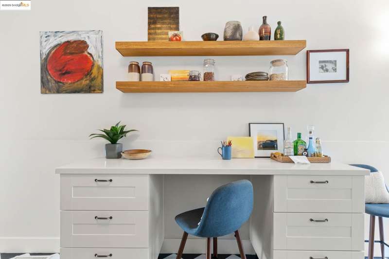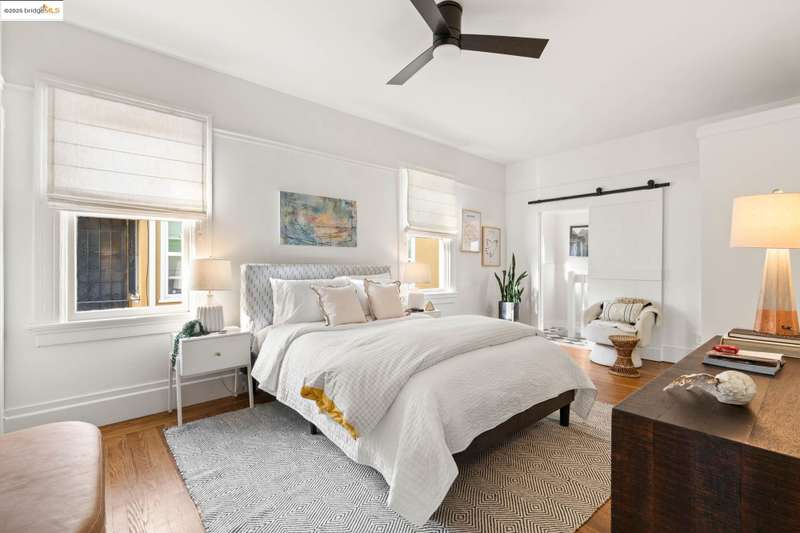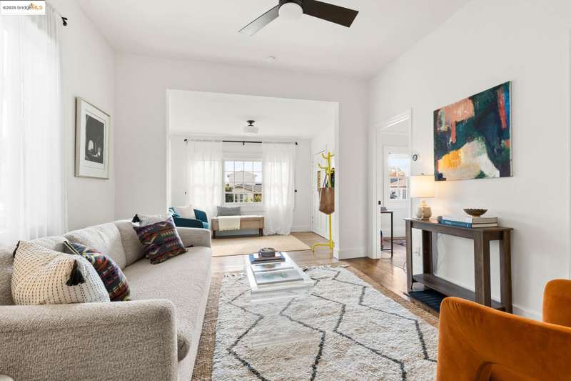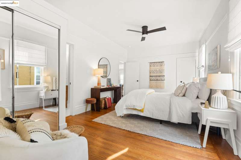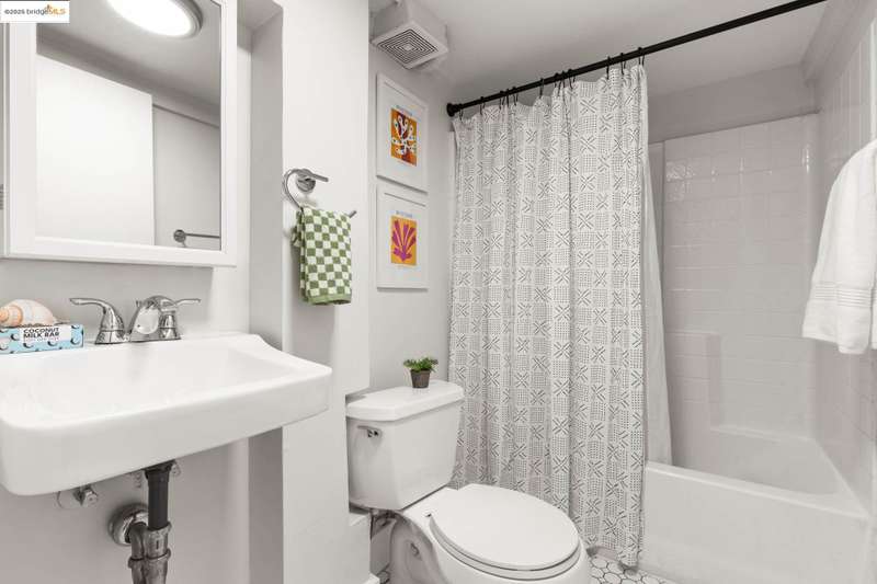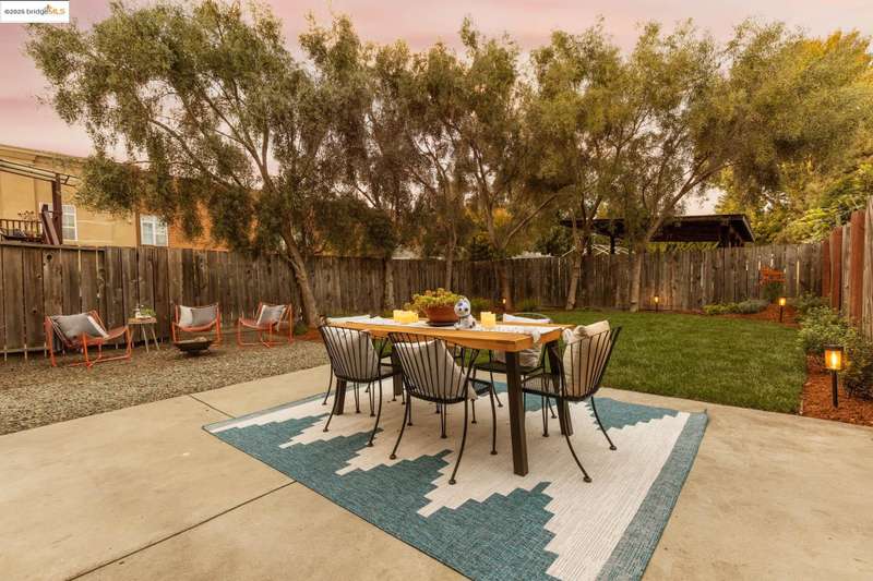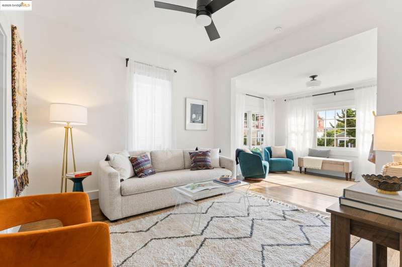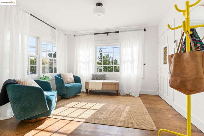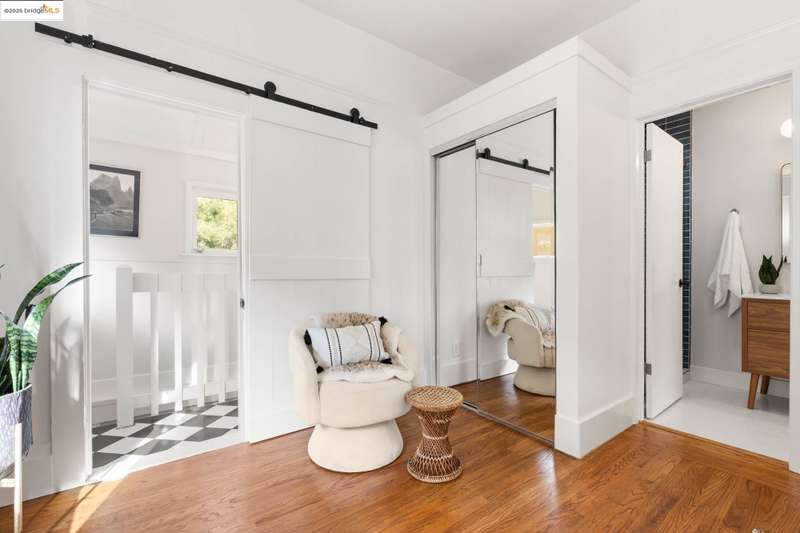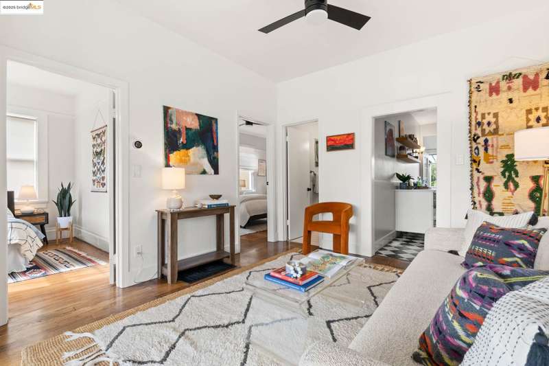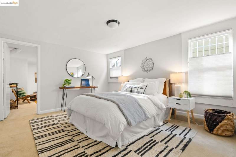 Welcome to 954 46th Street, a beautifully updated California bungalow blending timeless charm with modern style. The rich green faade with crisp white trim and lush, mature landscaping sets the tone. Inside, sunlight fills the oversized living area, highlighting beautiful wood floors. Two spacious bedrooms boast tall ceilings and plenty of windows! Conveniently located, the gorgeously remodeled bath features Pottery Barn vanity, Fireclay tile and Brizo faucet. The kitchen impresses with green and white cabinetry, stone counters, checkerboard floors, built-in desk, and eat-in area that opens to the backyard. Enjoy a screened-in deck, flat yard with large grassy lawn, and patio for outdoor dining and entertaining. The finished lower level offers multiple spaces that can be used for guests, media room, office, gym. Downstairs, you will also find a bath and kitchenette. Attached garage with interior access. Modern touches include solar panels, Nest system, Tesla car charger. Sidewalk & sewer compliant! Prime location near Lower Rockridge, Temescal, and Emeryvilleclose to dining, shops, and BART, commuting options. Temescal Community Garden is one block away. With a Bikescore® of 99 and a Walkscore® of 89, what a wonderful place to call home.