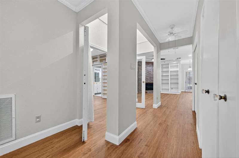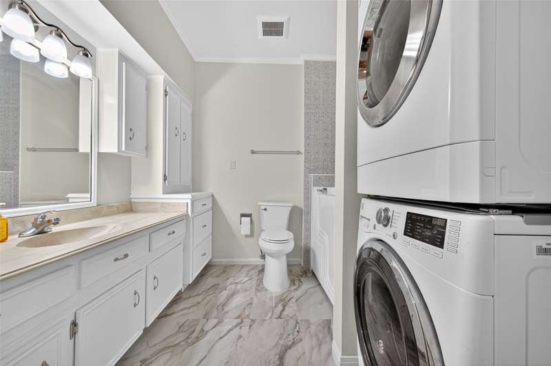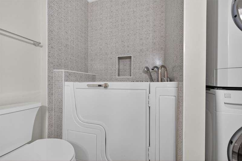 This perfectly located townhome in Bellaire is right inside the loop! The home features 2 bedrooms and 2 bathrooms, along with a 2-car attached garage. Tile and hardwood flooring flow throughout the space. The updated kitchen boasts stainless steel appliances, refrigerator, microwave, dishwasher and electric cooktop ample counter space, and plenty of storage, all enhanced by beautiful natural light. The primary suite is located at the front of the home, alongside a secondary bedroom and a spacious guest bathroom, which is equipped with a new acrylic walk-in bathtub called the Ella Bubble. For your convenience, a washer and dryer are included, and window coverings are provided throughout the home.