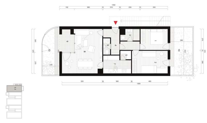Apartment S-1-1 - Ground floor - living area 68.46 m2 (2 bedrooms + bathroom + WC) + loggia (5.10 m2 - south-facing) + 2x garden (30 m2 - north and south-facing) + storage (1.90 m2) + garage parking space, total net area 84.22 m2 = €266,904