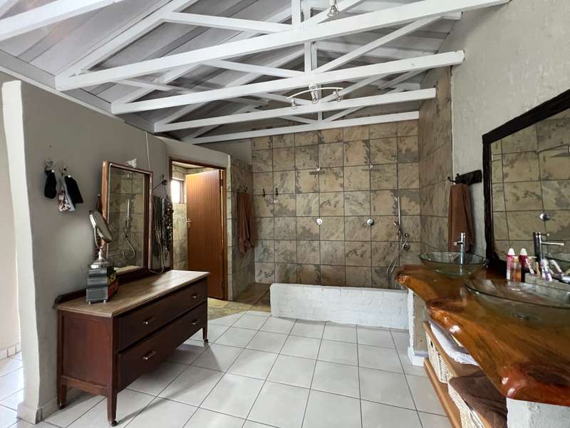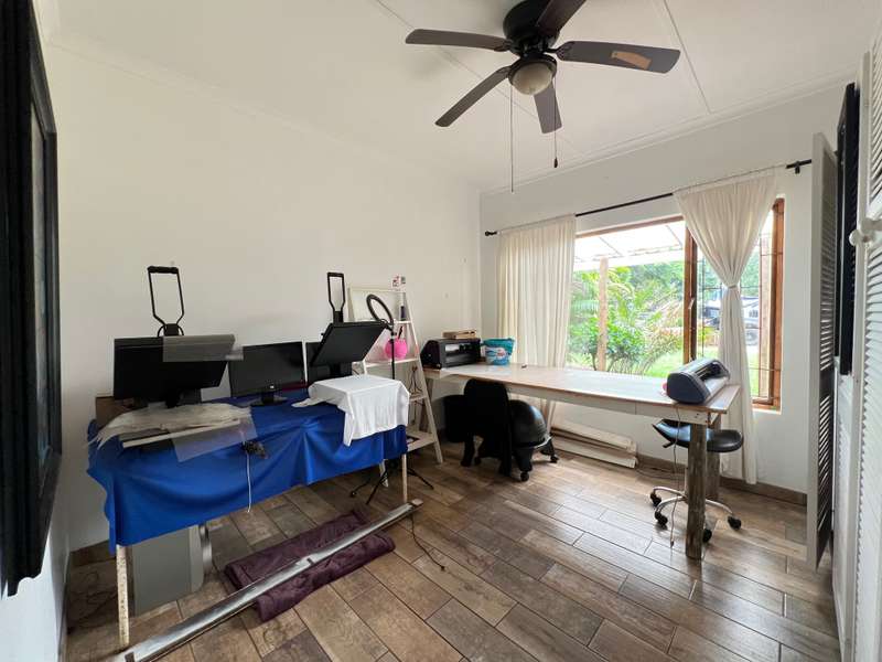 Welcome to this family home, nestled in the heart of a secure and peaceful village known for its abundance of recreational and nature activities. This expansive 5-bedroom, 4-bathroom home offers everything a growing family could desire, along with the bonus of a separate 1-bedroom, 1-bathroom granny flat — perfect for extended family or guests. The home boasts ample space both inside and out, with generous parking, three garages, and a large garden area that holds great potential for further development. Outside, you'll find a welcoming bar area and a dedicated entertainment space, ideal for family gatherings and celebrations. The outdoor undercover braai area ensures you can entertain year-round, no matter the weather. There is a well-appointed kitchen and a spacious walk-in pantry, offering plenty of storage for all your culinary needs. This property is truly designed with family living in mind, providing both comfort and functionality.