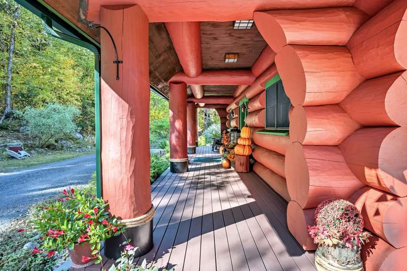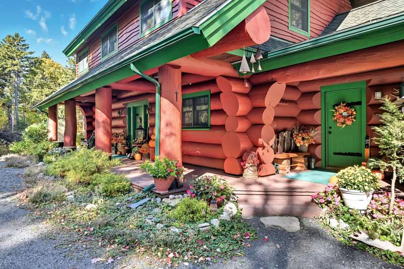 Welcome to Sweet Moose Lodge on Cormorant Cove. From the moment that you step onto the front porch of the custom-built Swedish Cope log cabin, you will feel as though you've been transported to an old Maine lodge. Built with 24 & 36'' hand-hewn Northern White Pine logs, the beautiful home on 5+ acres has a new 26' x 26' garage, meticulous landscaping, gardens, and a mixed wood of cedar, spruce, and white birch. Surrounded by land in conservation as well as the Scammon Ridge, Big Moose, and Burnt Jacket mountains to the west, Lily Bay and Prong Mountains to the north, and Elephant and Blue Ridge mountains to the east, this private enclave is everything that you would expect of a home in the Moosehead Lake region. The trail through the woods that leads to the dock beckons you to sit and relax. Prong Pond is 400 acres, 11 miles of shoreline, and 2 miles wide. It is the perfect body of water for a quiet kayak ride to explore all of the coves. It's not uncommon to sit on the dock and not see another soul (except for the ducks and loons). Enjoy your morning coffee on the private bedroom balcony overlooking the beautiful yard and gardens, while watching the deer roam the yard. The property is a bird lover's delight with hummingbirds, jays, chickadees, finches, redpolls, nuthatches, woodpeckers, and juncos. The kitchen is open to the dining area and living room, where you can access french doors to a balcony and the front porch. Random logs are etched with Native American Maine lakes and rivers' names, such as Chemquasabamticook, Chesuncook, and Passagassawakeag, which add to the old Maine lodge feel. The second level boasts an office and primary ensuite with a balcony. The bathroom features a private shower, soaking tub, washer and dryer, walk-in closet, and linen closet. A timeless log cabin to call home for generations. Offered at $1,200,000 by Sally & Darryl Harvey of Maine Outdoor Properties Team of Realty of Maine. 207-653-1555 NOT A DRIVE-BY. MUST OBTAIN PERMISSION.