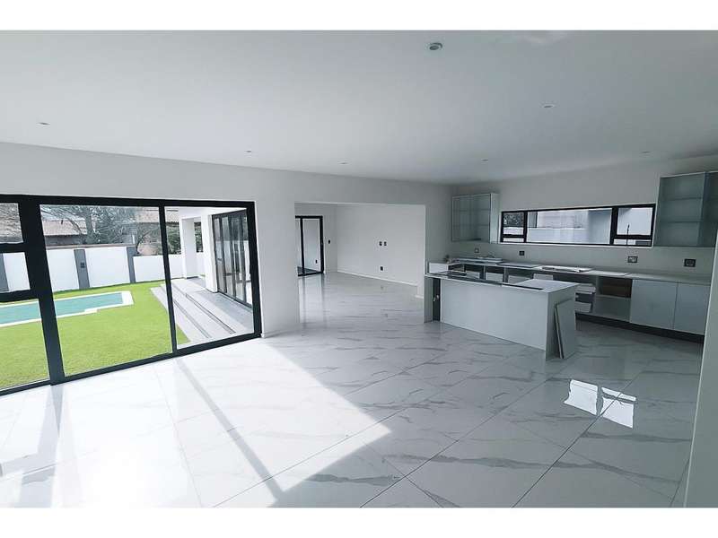 Bespoke New Development - Modern Contemporary Elegance in the Heart of Bryanston Reduced Transfer Costs Welcome to a home where modern luxury meets tranquil suburban living. This bespoke newly built residence, nestled within a secure, boomed-off enclave of Bryanston, offers a rare blend of architectural sophistication, high-end finishes, and functional design ?Çö all crafted for effortless, stylish living. Situated in one of the most desirable and secure neighborhoods in Bryanston, this move-in-ready home is ideal for discerning buyers seeking contemporary refinement in a quiet and exclusive setting. With 24/7 manned security, the peace of mind offered by this gated community adds even more value to this exceptional property. Property Highlights: 3 spacious upstairs bedrooms and 2 bedrooms downstairs. 4 Modern Contemporary bathrooms ?Çô 4 en-suite, 1 separate guest bathroom Double automated garage plus 3 additional open parking bays Expansive garden with pool and entertainment area Backup water supply system Quiet location ?Çô not close to boundary walls or busy roads Elegant Interiors & Designer Details From the moment you enter, you're greeted by the clean lines and flowing spaces that define this home's modern contemporary aesthetic. The open-plan living area is an entertainer?ÇÖs dream, anchored by sleek, modern finishes and stacking glass doors that blur the line between indoor and outdoor living. The formal and informal lounges offer flexibility for family relaxation and hosting guests. Natural light floods the space, enhancing the beauty of the home?ÇÖs textures and neutral color palette. The kitchen is designed to be both functional and beautiful, with premium appliances, minimalist cabinetry, and ample storage space. A scullery and pantry can easily be incorporated to add additional utility. Bedrooms & Bathrooms All bedrooms are generously proportioned, offering comfort and privacy. The master suite is a standout feature ?Çö a private retreat complete with a bespoke walk-in closet, finished with glass display panels to showcase and organize your wardrobe in style. Four of the five bedrooms include en-suite bathrooms, each boasting ultra-modern features like free-standing bathtubs, frameless glass showers, and Gerberit wall-mounted toilets for a seamless, contemporary finish. The fifth bathroom serves perfectly as a stylish guest bathroom. Outdoor Oasis The jewel of this home is the expansive landscaped garden potential, surrounding a sparkling swimming pool and creating the ultimate outdoor sanctuary. Set on a generous erf, the home is perfectly positioned on the plot to allow for large wraparound garden space ?Çö ideal for children, pets, or simply enjoying the outdoors. Lush lawns and mature planting zones make this a peaceful green escape in the heart of the city. The entertainment patio, overlooking the pool and garden, is fitted with glass folding doors, opening wide to extend the living space seamlessly into the outdoors. Whether you're hosting a summer braai, relaxing with a book, or entertaining guests under the stars, this area is designed to impress. Location & Lifestyle Bryanston remains one of Johannesburg?ÇÖs most prestigious suburbs, offering proximity to leading schools, premium shopping centers, fine dining, gyms, medical facilities, and major transport routes ?Çö all while maintaining a peaceful, residential charm. Whether you're a growing family, a professional couple, or someone seeking to invest in high-value real estate, this property is a rare opportunity to secure an elegant, future-ready home in an outstanding location.
