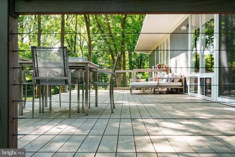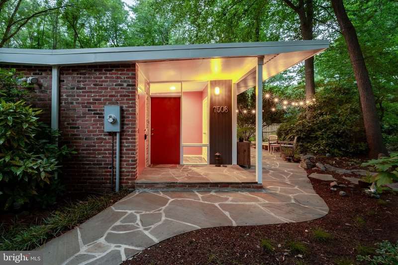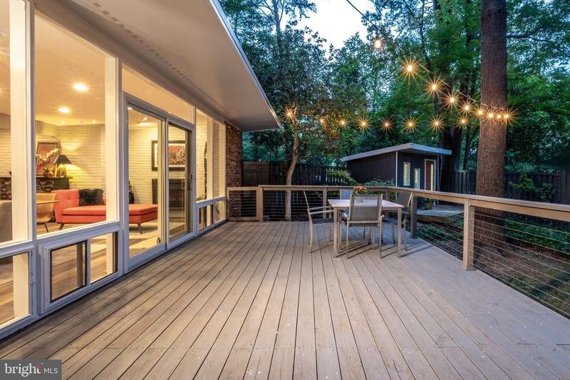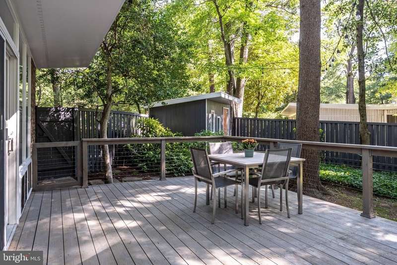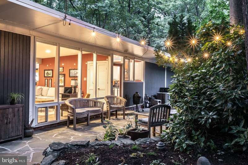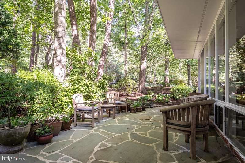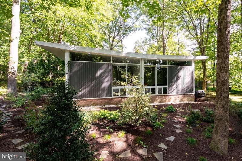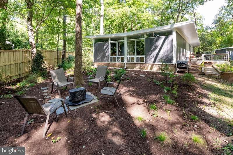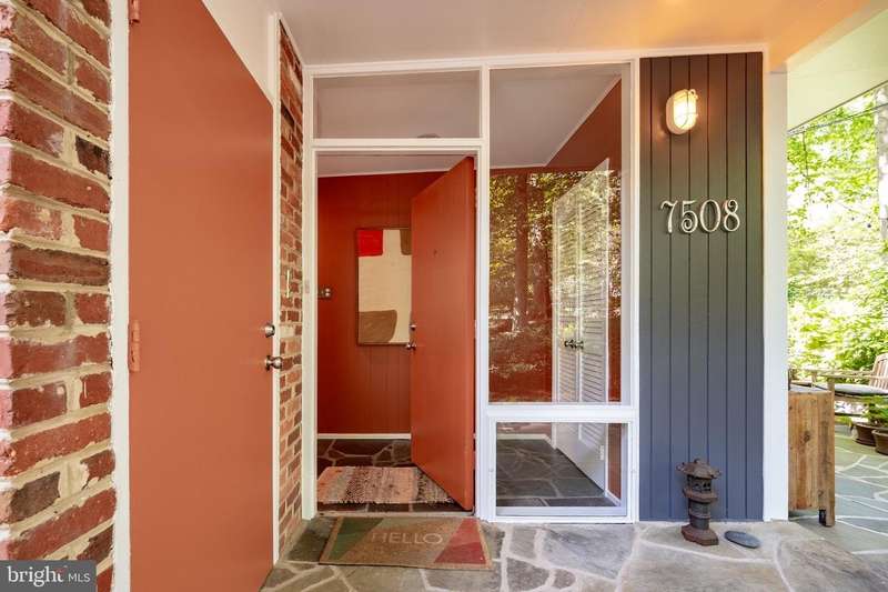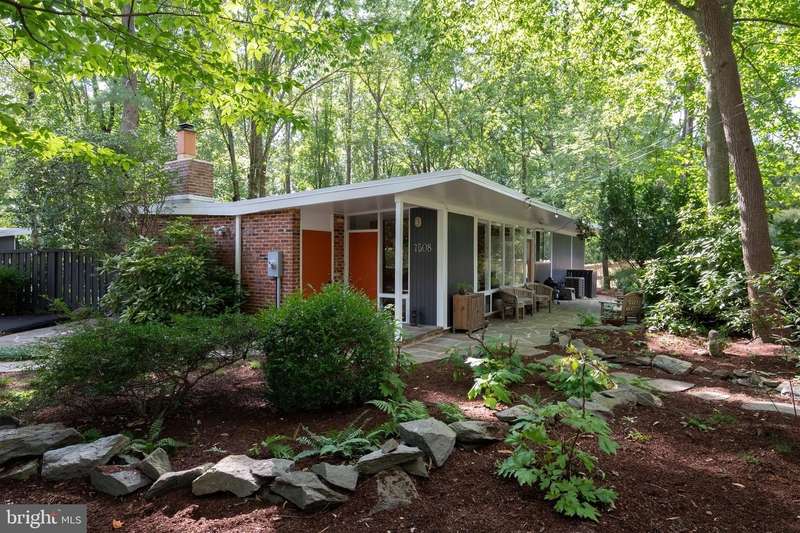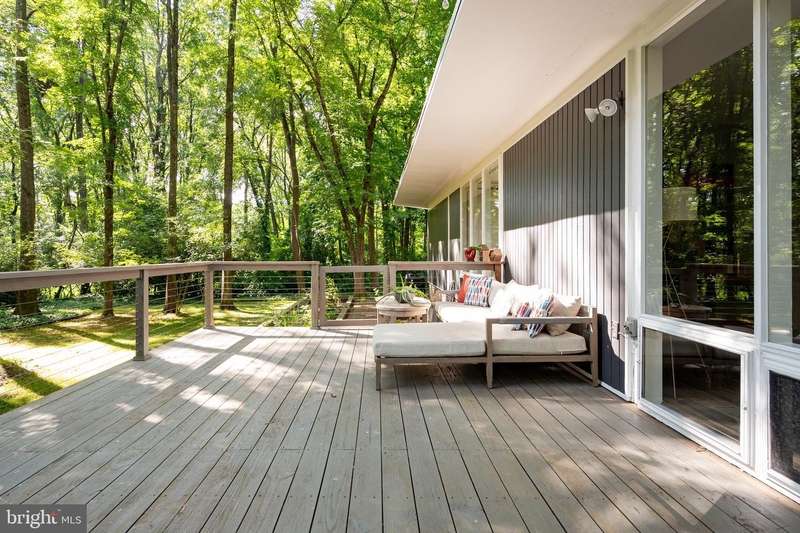 This rare, one-level Mid-Century Modern home designed by renowned architect, Charles Goodman, is located in the highly sought-after neighborhood of Hollin Hills. The home features a distinctive butterfly roof, floor-to-ceiling windows and three skylights, three outdoor living areas, and an extended floor plan expanded in width and depth during construction making it notably larger than typical Hollin Hills homes. Nestled on a beautifully native landscaped lot recently certified as a Wildlife Sanctuary that backs to five acres of Fairfax County parkland, the home provides a private sanctuary within the heart of a vibrant, active community. Within the home, the owners will have over 1,700 square feet of thoughtfully designed living space to call their own. Upon entering, you're welcomed into a foyer with original Hollin Hills stonework that opens to a spacious, light-filled open floor plan offering many options for living, dining, relaxing, and gathering. This multi-functional space boasts a gas fireplace hearthed with more original stonework and a dining area with sliding glass doors that lead to a brand-new deck complete with modern stainless steel railings, further extending the living space. The updated and sleek modern kitchen boasts a skylight, granite countertops, stainless steel appliances, a pantry and ample storage, as well as a glass door that opens to a charming front slate patio. Additionally, this home features three spacious bedrooms, all with windows facing the beautiful landscaping outdoors; two full, updated bathrooms; and multiple oversized closets for storage. The true primary bedroom - so large that a king sized bed seems small - has a beautifully remodeled en-suite bathroom with a skylight and a custom tile shower. The second bedroom is uncommonly large as well, giving the home the feel of two primary bedrooms. The third bedroom overlooks the lush backyard and park and can easily accommodate its new owners beautifully as a bedroom, an inspiring art studio, or as a relaxing home office. The hallway bathroom features a tub with glass doors and another skylight, flooding the space with natural light. High-end laminate wood flooring runs throughout the home, and most closets include premium organizers for efficient storage. Outdoor amenities include a newly rebuilt, slant-roof detached shed with windows, electricity, and a small front porch area-offering great potential as a home office or studio. An additional attached storage space provides ample room for bikes and other equipment, rounding out the home's thoughtful blend of form and function. The scenic, Hollin Hills neighborhood also boasts over 30 acres of community-owned parkland and trails, offers membership to 2 community pools as well as membership to a tennis and pickleball club, and is a commuter's dream being just minutes from GW Parkway and trails, D.C., Pentagon, Fort Belvoir, and Andrews AFB & Tysons Corner via I-495. If you have ever dreamed of living in a park like setting where you can gaze upon nature from literally every room of your home, all the while retaining all of the urban conveniences of restaurants, stores, and culture just minutes away; wish you could step outside your door and see a multitude of native Virginian plants and animals from the solitude of your own personal native woodland garden, without spending more than a few minutes a week caring for it; and aspire to be a part of a true community of neighbors who look out for one another, have planned social events throughout the year, and where a simple walk around the block leads to lots of hand waves or curbside chats, while still retaining your own private space to recharge as needed - look no further than the well-cared for Sanctuary offered at 7508 Range Rd. This home is truly a one of a kind in a one of a kind location in a one of a kind community and an idyllic place to call home! Seller has right to accept an offer at any time.