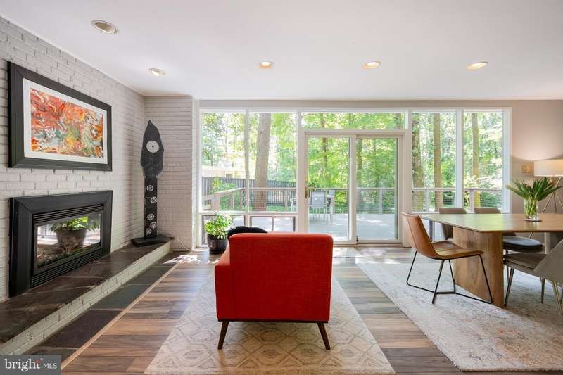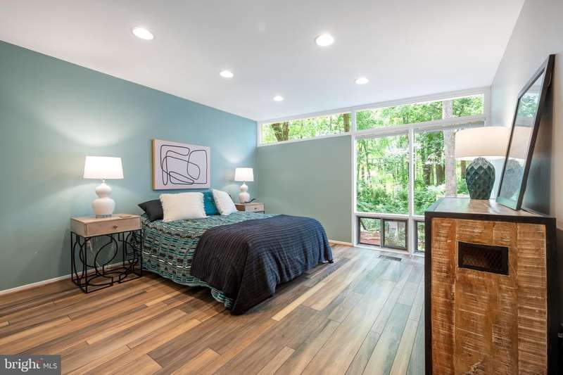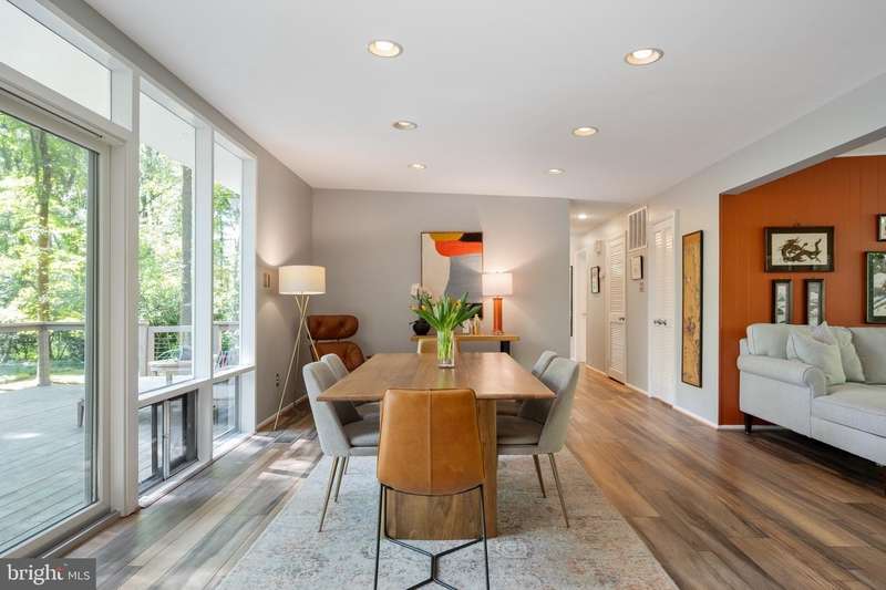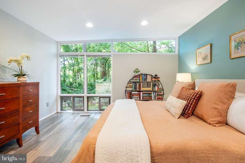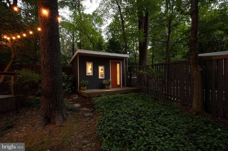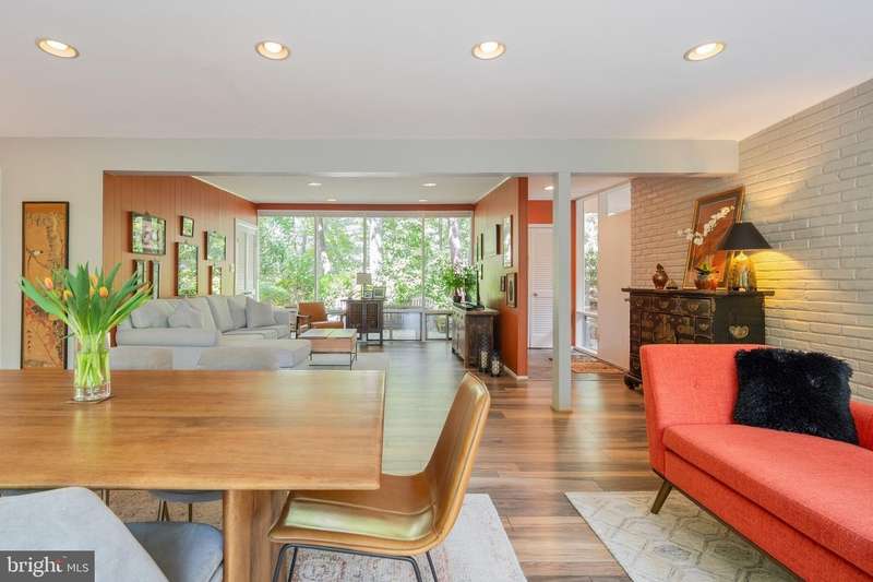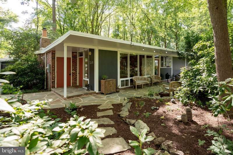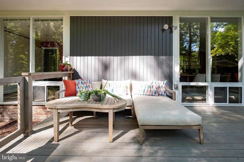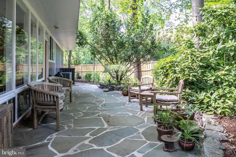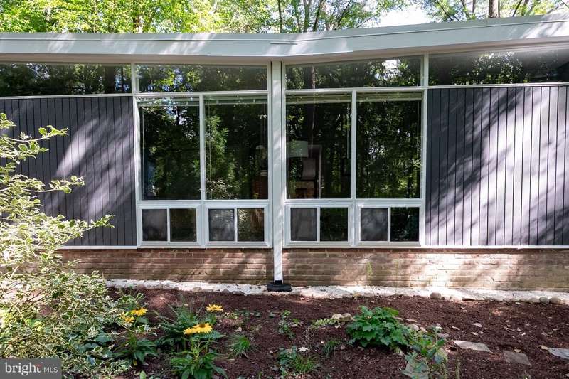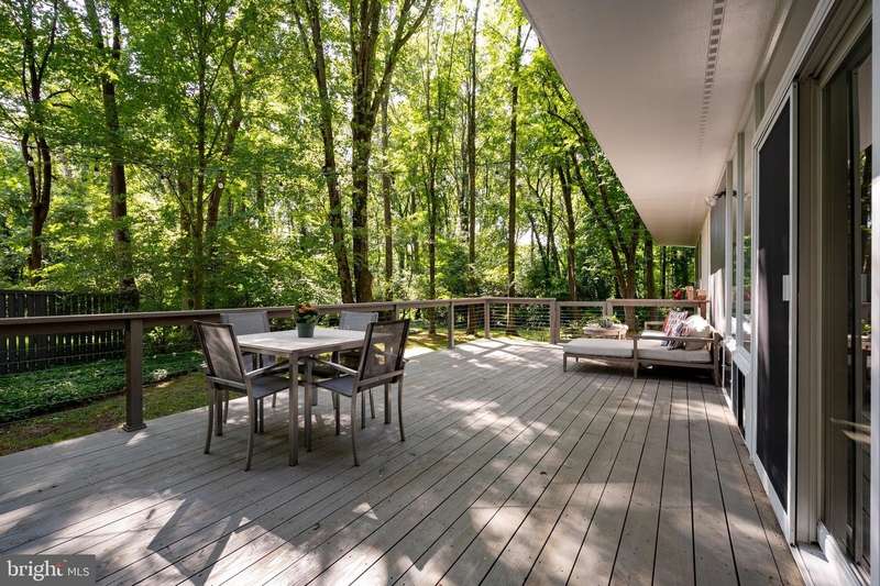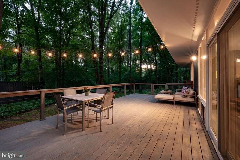 This rare, one-level Mid-Century Modern home designed by renowned architect, Charles Goodman, is located in the highly sought-after neighborhood of Hollin Hills. The home features a distinctive butterfly roof, floor-to-ceiling windows and three skylights, three outdoor living areas, and an extended floor plan expanded in width and depth during construction making it notably larger than typical Hollin Hills homes. Nestled on a beautifully native landscaped lot recently certified as a Wildlife Sanctuary that backs to five acres of Fairfax County parkland, the home provides a private sanctuary within the heart of a vibrant, active community. Within the home, the owners will have over 1,700 square feet of thoughtfully designed living space to call their own. Upon entering, you're welcomed into a foyer with original Hollin Hills stonework that opens to a spacious, light-filled open floor plan offering many options for living, dining, relaxing, and gathering. This multi-functional space boasts a gas fireplace hearthed with more original stonework and a dining area with sliding glass doors that lead to a brand-new deck complete with modern stainless steel railings, further extending the living space. The updated and sleek modern kitchen boasts a skylight, granite countertops, stainless steel appliances, a pantry and ample storage, as well as a glass door that opens to a charming front slate patio. Additionally, this home features three spacious bedrooms, all with windows facing the beautiful landscaping outdoors; two full, updated bathrooms; and multiple oversized closets for storage. The true primary bedroom - so large that a king sized bed seems small - has a beautifully remodeled en-suite bathroom with a skylight and a custom tile shower. The second bedroom is uncommonly large as well, giving the home the feel of two primary bedrooms. The third bedroom overlooks the lush backyard and park and can easily accommodate its new owners beautifully as a bedroom, an inspiring art studio, or as a relaxing home office. The hallway bathroom features a tub with glass doors and another skylight, flooding the space with natural light. High-end laminate wood flooring runs throughout the home, and most closets include premium organizers for efficient storage. Outdoor amenities include a newly rebuilt, slant-roof detached shed with windows, electricity, and a small front porch area-offering great potential as a home office or studio. An additional attached storage space provides ample room for bikes and other equipment, rounding out the home's thoughtful blend of form and function. The scenic, Hollin Hills neighborhood also boasts over 30 acres of community-owned parkland and trails, offers membership to 2 community pools as well as membership to a tennis and pickleball club, and is a commuter's dream being just minutes from GW Parkway and trails, D.C., Pentagon, Fort Belvoir, and Andrews AFB & Tysons Corner via I-495. If you have ever dreamed of living in a park like setting where you can gaze upon nature from literally every room of your home, all the while retaining all of the urban conveniences of restaurants, stores, and culture just minutes away; wish you could step outside your door and see a multitude of native Virginian plants and animals from the solitude of your own personal native woodland garden, without spending more than a few minutes a week caring for it; and aspire to be a part of a true community of neighbors who look out for one another, have planned social events throughout the year, and where a simple walk around the block leads to lots of hand waves or curbside chats, while still retaining your own private space to recharge as needed - look no further than the well-cared for Sanctuary offered at 7508 Range Rd. This home is truly a one of a kind in a one of a kind location in a one of a kind community and an idyllic place to call home! Seller has right to accept an offer at any time.