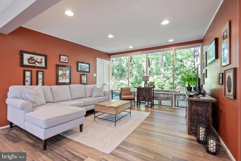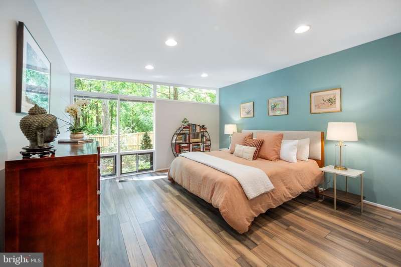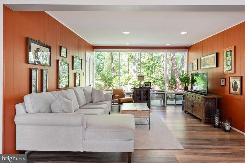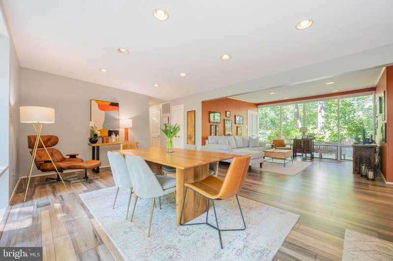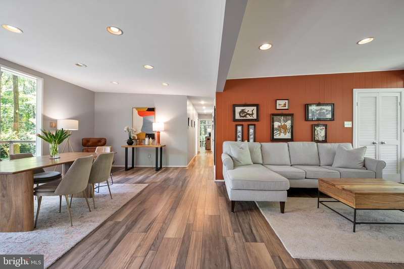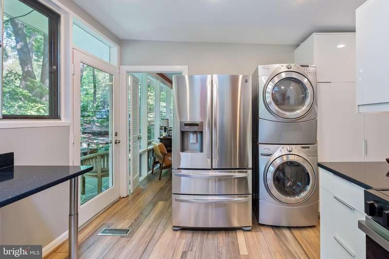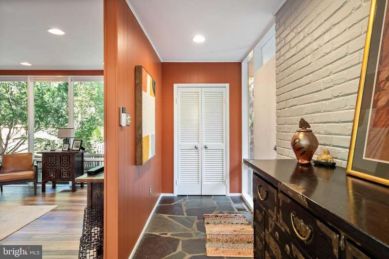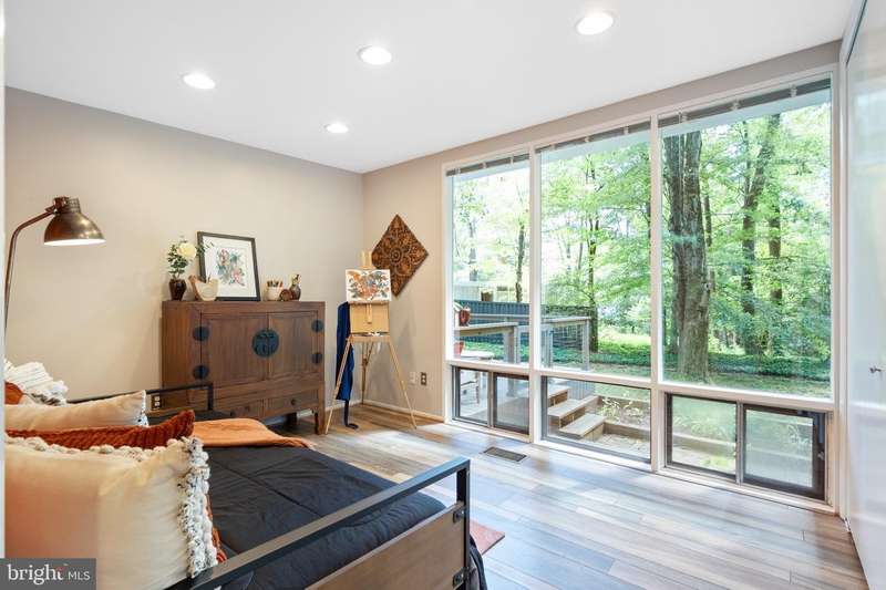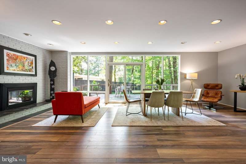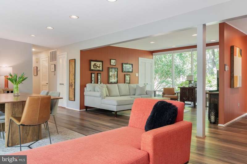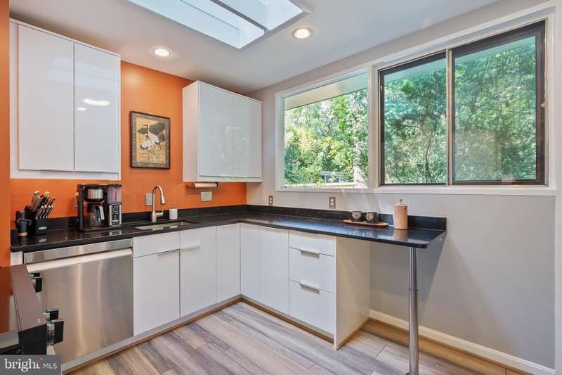This rare, one-level Mid-Century Modern home designed by renowned architect, Charles Goodman, is located in the highly sought-after neighborhood of Hollin Hills. The home features a distinctive butterfly roof, floor-to-ceiling windows and three skylights, three outdoor living areas, and an extended floor plan expanded in width and depth during construction making it notably larger than typical Hollin Hills homes. Nestled on a beautifully native landscaped lot recently certified as a Wildlife Sanctuary that backs to five acres of Fairfax County parkland, the home provides a private sanctuary within the heart of a vibrant, active community. Within the home, the owners will have over 1,700 square feet of thoughtfully designed living space to call their own. Upon entering, you're welcomed into a foyer with original Hollin Hills stonework that opens to a spacious, light-filled open floor plan offering many options for living, dining, relaxing, and gathering. This multi-functional space boasts a gas fireplace hearthed with more original stonework and a dining area with sliding glass doors that lead to a brand-new deck complete with modern stainless steel railings, further extending the living space. The updated and sleek modern kitchen boasts a skylight, granite countertops, stainless steel appliances, a pantry and ample storage, as well as a glass door that opens to a charming front slate patio. Additionally, this home features three spacious bedrooms, all with windows facing the beautiful landscaping outdoors; two full, updated bathrooms; and multiple oversized closets for storage. The true primary bedroom - so large that a king sized bed seems small - has a beautifully remodeled en-suite bathroom with a skylight and a custom tile shower. The second bedroom is uncommonly large as well, giving the home the feel of two primary bedrooms. The third bedroom overlooks the lush backyard and park and can easily accommodate its new owners beautifully as a bedroom, an inspiring art studio, or as a relaxing home office. The hallway bathroom features a tub with glass doors and another skylight, flooding the space with natural light. High-end laminate wood flooring runs throughout the home, and most closets include premium organizers for efficient storage. Outdoor amenities include a newly rebuilt, slant-roof detached shed with windows, electricity, and a small front porch area-offering great potential as a home office or studio. An additional attached storage space provides ample room for bikes and other equipment, rounding out the home's thoughtful blend of form and function. The scenic, Hollin Hills neighborhood also boasts over 30 acres of community-owned parkland and trails, offers membership to 2 community pools as well as membership to a tennis and pickleball club, and is a commuter's dream being just minutes from GW Parkway and trails, D.C., Pentagon, Fort Belvoir, and Andrews AFB & Tysons Corner via I-495. If you have ever dreamed of living in a park like setting where you can gaze upon nature from literally every room of your home, all the while retaining all of the urban conveniences of restaurants, stores, and culture just minutes away; wish you could step outside your door and see a multitude of native Virginian plants and animals from the solitude of your own personal native woodland garden, without spending more than a few minutes a week caring for it; and aspire to be a part of a true community of neighbors who look out for one another, have planned social events throughout the year, and where a simple walk around the block leads to lots of hand waves or curbside chats, while still retaining your own private space to recharge as needed - look no further than the well-cared for Sanctuary offered at 7508 Range Rd. This home is truly a one of a kind in a one of a kind location in a one of a kind community and an idyllic place to call home! Seller has right to accept an offer at any time.