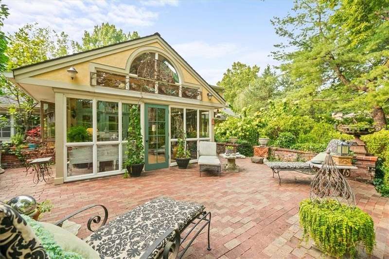 Nestled in the heart of Mission Hills, this extraordinary home offers timeless elegance and a stunning setting reminiscent of an English country estate. Set on over a half-acre, the backyard is a true sanctuary with lush gardens, multiple seating areas, arbors, fountains, and patios designed for both relaxation and entertaining. Inside, natural light pours into the spectacular sunroom with vaulted ceilings and skylights. The expanded primary suite features a spa-like bath and a generous walk-in closet. Upstairs, two oversized bedroom suites showcase charming New England pine hardwood floors and private en suites. Hardwood floors flow throughout the spacious living and dining rooms, while the inviting great room impresses with Brazilian pine hardwoods and soaring vaulted ceilings. The chefs kitchen is outfitted with high-end stainless appliances and overlooks the picturesque backyard. Every detail of this residence reflects thoughtful design, blending warmth, sophistication, and comfort in one of Kansas Citys most coveted neighborhoods.