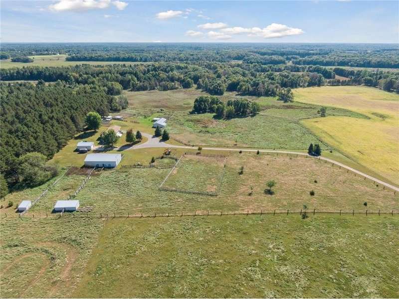 Experience the tranquility of country living and pursue your agricultural vision with this cutting-edge facility designed for sustainable, year-round production. This exceptional 55.85-acre estate in Stacy, MN, offers a rare opportunity, featuring a fully renovated walk-out rambler, state-of-the-art aquaponics facilities, and a complete equestrian setup, all within a quick, easy commute to the Twin Cities. The spacious rambler is move in ready - every detail is new: kitchen cabinets, granite counters and stainless-steel appliances, new bath fixtures, fresh paint, new flooring, and designer lighting throughout, creating an atmosphere of modern elegance. The main floor includes three bedrooms (the primary with its own private ¾ bath), a full bath, the living room, kitchen and informal dining room, with a sliding glass door to a large, covered deck, a nice sitting room that could function as an office or main floor family room with access to the attached two car garage. Also conveniently located off the sitting room is a main floor laundry room and ¾ bath. The walk-out lower level offers a family room, fourth bedroom, ¾ bath and an office. A massive 120' x 136' commercial greenhouse provides a climate-controlled environment, optimized for high-yield, continuous production of high-value fish and crops. The large 126' x 40' pole barn serves as the central operations facility, efficiently housing all essential aquaponics equipment (pumps, filtration, tanks, etc.) and offering substantial space for processing, packaging, and logistics. Another feature of this property is the dedicated Horse Barn, featuring six stalls, and leads to an outdoor arena. Other outbuildings include a 24' x 64' hay barn, a 26' x 32' workshop (or additional 4 car garage), and a chicken coop. The possibilities here are endless!