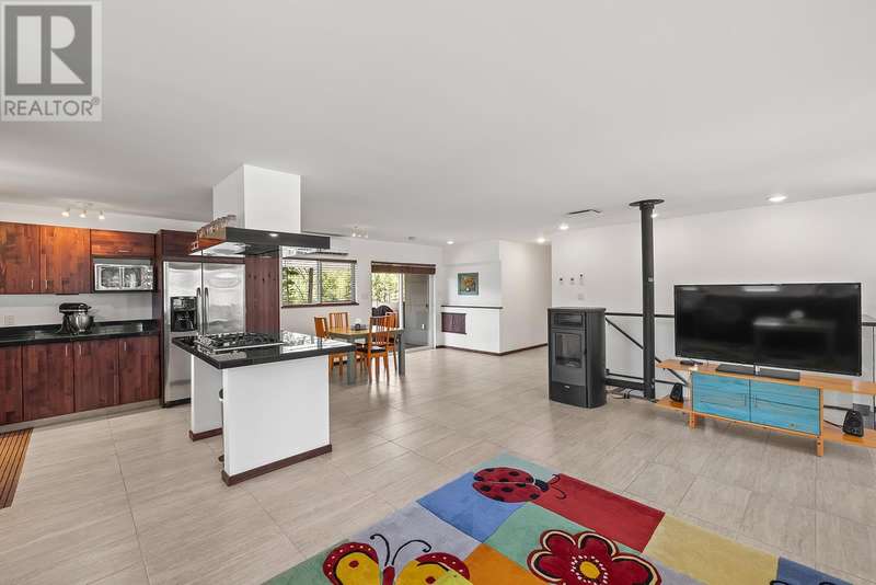 Discover your dream home where luxury meets functionality. The upper level offers a spacious open-concept layout with large kitchen, living and dining rooms, 3 beds, 1 bath, private balcony with stairs to the backyard. In-floor heat, pellet stove, and heat pump provide year-round comfort. The lower level has two brand-new, fully furnished guest areas, each with a private entrance and licensed for B&B. Each includes a 3-pc bath, bedroom, TV lounge, dining area, cabinets, sink, fridge, dishwasher, microwave, and backyard access. Linens, coffee makers, dishes, and supplies included. Guest areas are separated by STC~60, 1-hour fire-rated assemblies from both the main home and each other. Sale includes a B&B website (okanaganbnb.ca), Instagram and Facebook pages – a turnkey business. The 854 sqft 3-car garage has epoxy floors, a heat pump, hot/cold water, and 30-amp EV outlet. The fully fenced, flat yard includes smart irrigation, electronic gates, shed, RV/boat parking. The septic system was upgraded in 2023 for B&B use. Also installed: a smartphone-controlled, roof-mounted wildfire sprinkler. Whether you seek a luxurious home, unbeatable income potential, or both – this property delivers. Ask you REALTOR for the list of special features. (id:58403)