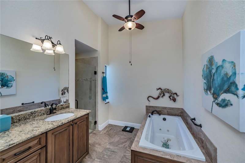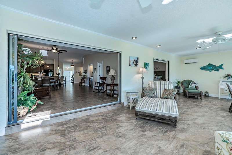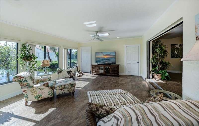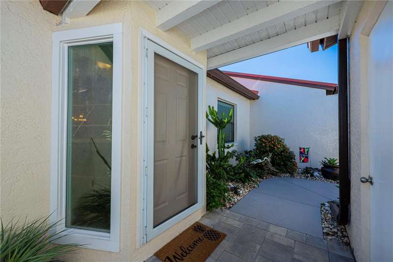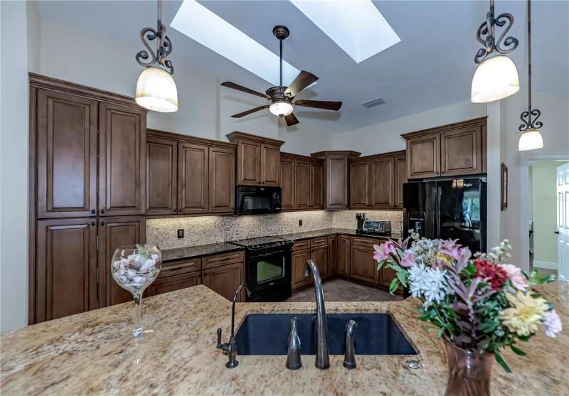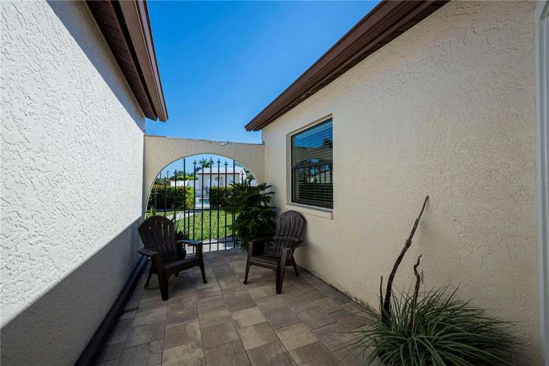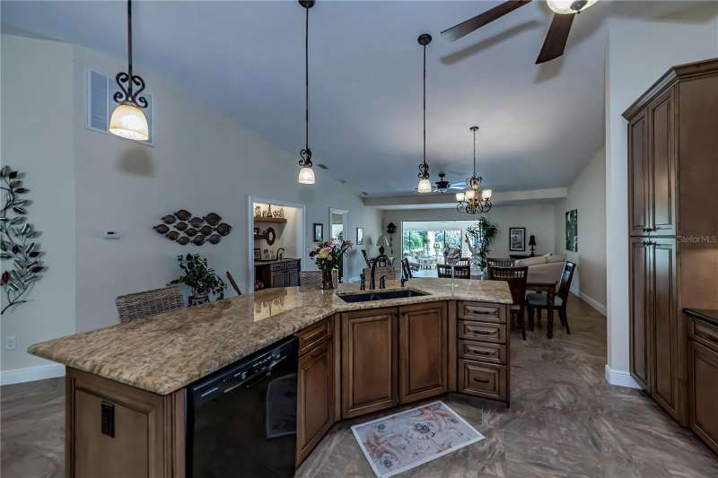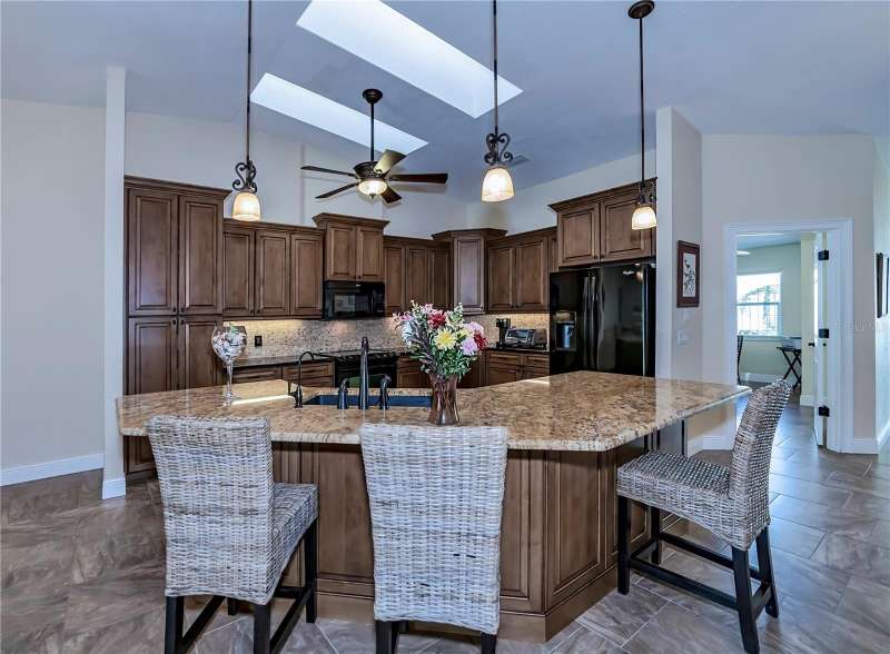Looking for a Totally Remodeled Villa with New Roof and Skylights in 2022? Then look no more! As you walk through the private paver courtyard and enter the villa you will notice there is tile throughout. The floor plan is wide open. The beautiful updated kitchen with custom maple cabinets and granite counter-tops are the focal points enhanced by the cathedral ceiling and new skylights. There are pull-out drawers in the pantry as well as reverse osmosis. You will also notice the wet bar across from the kitchen. Plus there is all new plumbing throughout! Off of the spacious great room you will see the large Florida room/lanai overlooking the pond and gazebo-which is facing south and is a great place to entertain or just relax! It is enclosed with sliding windows, is all tile and has a separate a/c unit. There is a large storage closet at the end of the Florida room. Accordian shutters run the length of the room outside. The master bedroom has an elevated ceiling and also has access to the lanai. The master bath is beautiful with a jetted tub and a walk-in shower. There are dual sinks, custom wood cabinets and granite counters. On the other side of the house is the 2nd bedroom, large laundry room, and updated bath with wood cabinets, granite and a walk-in shower. Across the hall is the large 3rd bedroom which can also be used as an office or den. The villa has Hurricane protection-hurricane windows and hurricane sliders on lanai. updated lighting and oversized baseboards. Not to mention 8 ceiling fans! The double garage has a screen door. The complex offers 2 pools and a clubhouse. For convenience, this villa is located close to one of them! There is also a fishing pier and boating is allowed on the large lake- small boats only! See this gorgeous villa today! Just like a house but without the maintenance! You won't be disappointed!