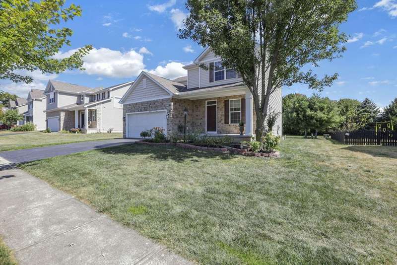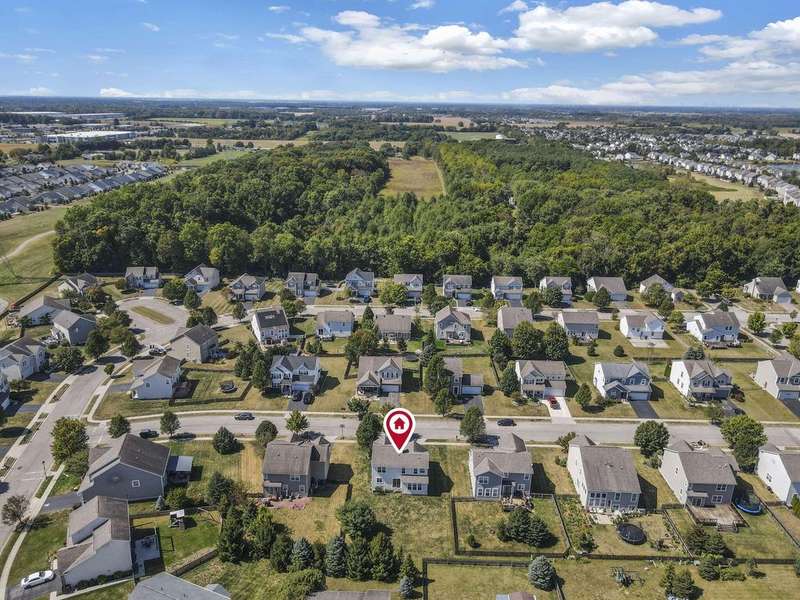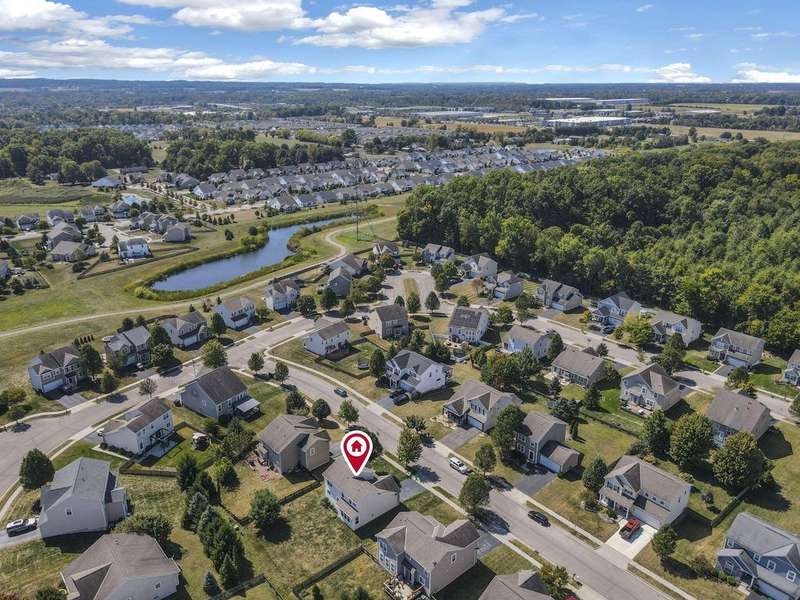 Welcome to this modern 2-story home located in the desirable Villages of Sycamore Creek! Designed with comfort and functionality in mind, this home features an inviting floor plan perfect for entertaining, raising a family, or relaxing on the charming front porch. The spacious owner's suite offers a private bathroom and a large walk-in closet, while two additional bedrooms share a second full bath. Convenient second-floor laundry adds to the ease of daily living.Enjoy gatherings in the open family room with a cozy gas log fireplace, seamlessly connected to the dining area and kitchen. The lower level provides abundant storage and potential for future living space. Step outside to a large, park-like backyard?an ideal setting to create your dream patio or deck. Just a short distance to the community pool and elementary school, this home offers both convenience and lifestyle.