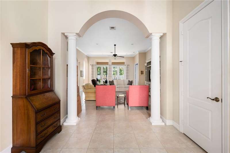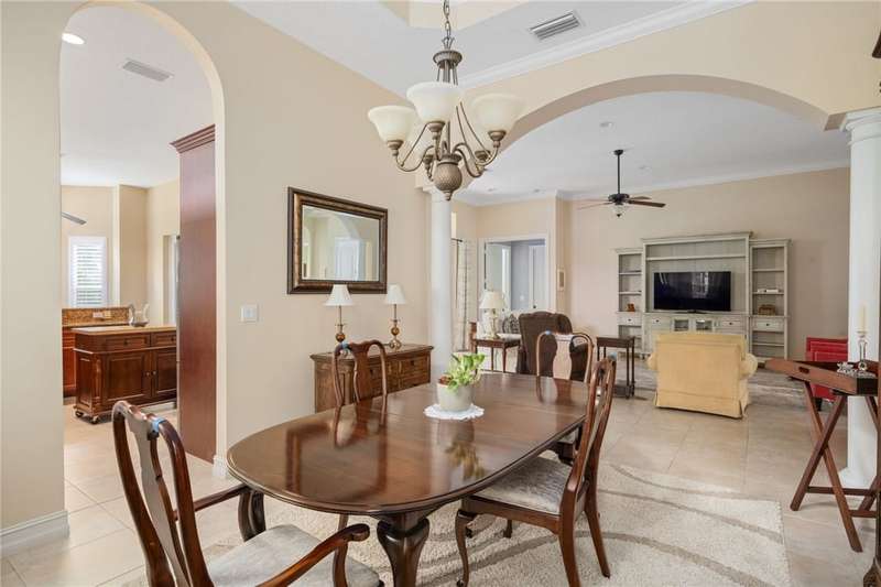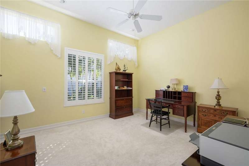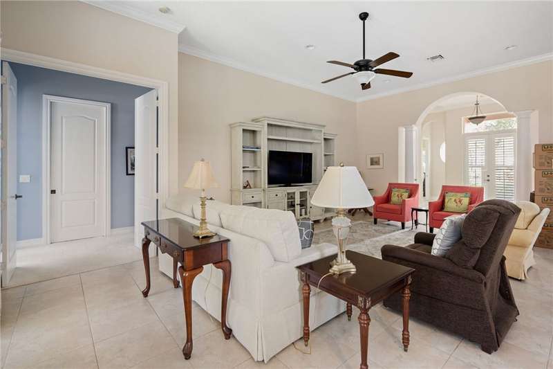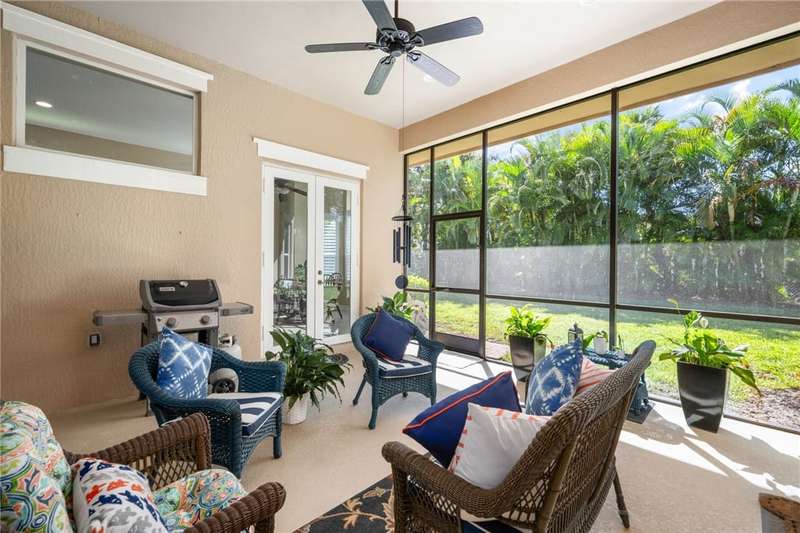 Beautiful 3BR, 2.5BA home in the private gated community of Riverwind. Features impact glass, electric roll-down hurricane screen on lanai, plantation shutters, and crown molding. Expansive owners suite with two closets and abundant natural light. Enjoy resort-style amenities including clubhouse, tennis, fitness center, and pool all in a serene, well-maintained setting. Move-in ready and built for comfort and peace of mind! Sizes approx. subject to error.