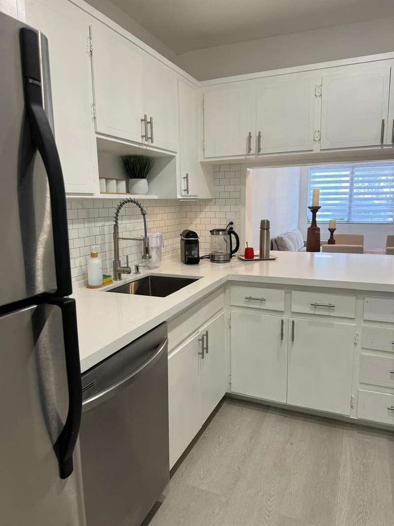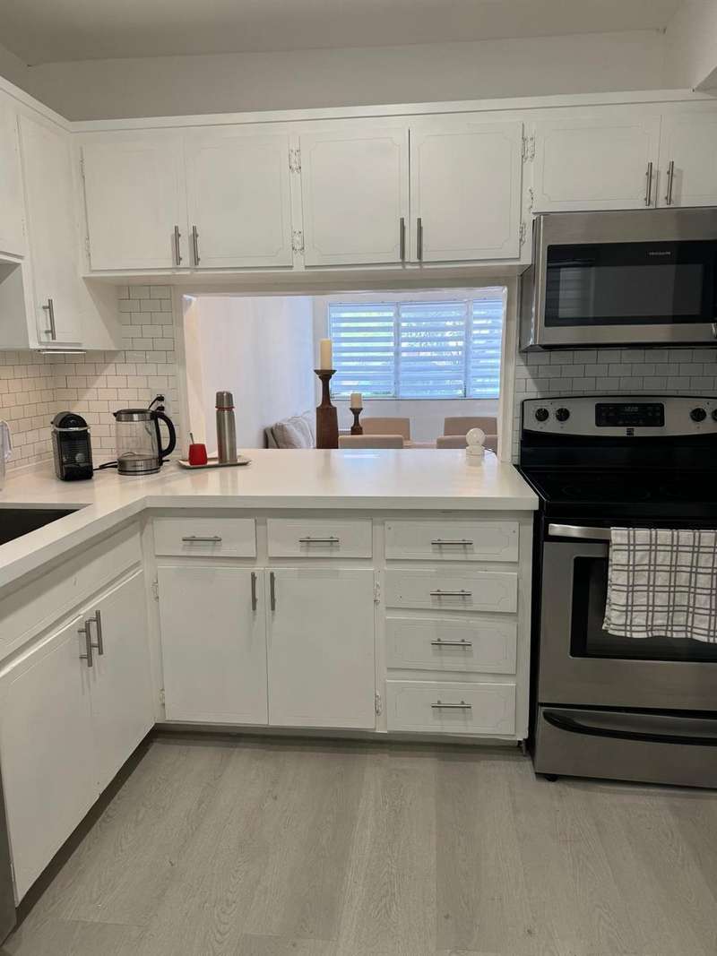 Absolutely stunning updated unit remodeled in a perfectly located on the 1st floor Remodeled kitchen and bathrooms. Stainless steel appliances. vinyl tile throughout (no carpet) Master bedroom with balcony and large closets in the main bedroom and remodeled main bathroom with full shower. Comes with an outside of the unit storage area. Assigned parking spot. Great location Close to Hallandale Beach, Gulfstream Park Casino, and Racetrack are within walking distance. Aventura Mall, and restaurants. 55+ community