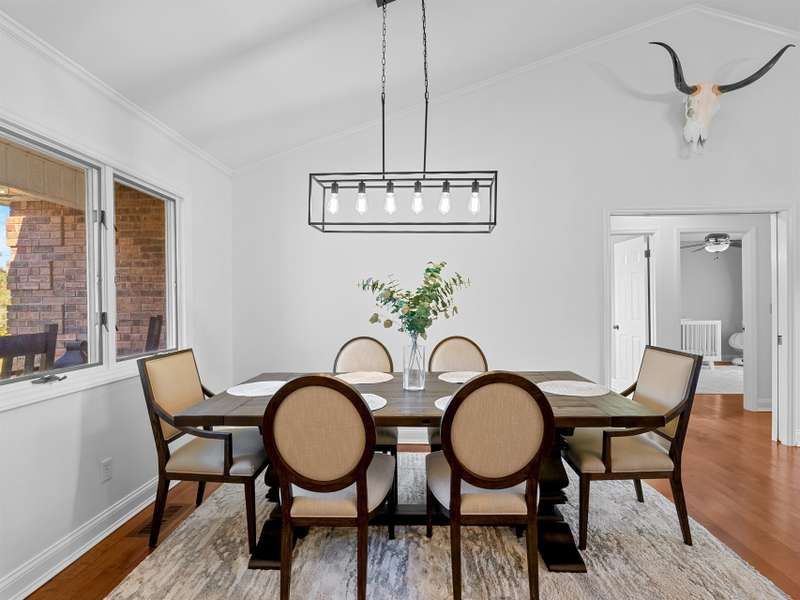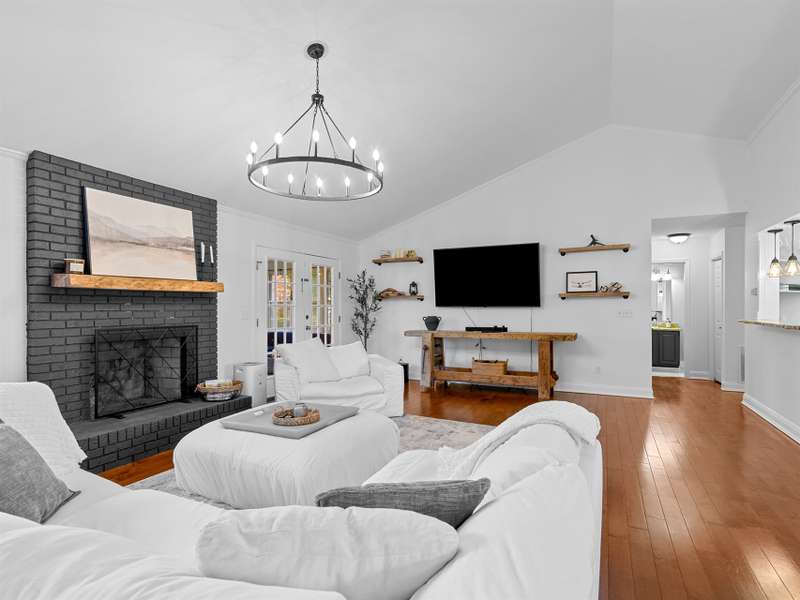 The single-family residence at is a contemporary styled brick home built in 1990 on a 1.54-acre lot. The home features a split-bedroom, open floor plan with cathedral ceilings. The one level floor plan has lots of living space, with wood and tiled floors featuring three bedrooms, two full bathrooms, and one half bathroom.The living room includes a fireplace. The home also has a four-season sunroom and a laundry room on the main level. Exterior features include a rear fenced yard, and an attached two-car garage. The property has a huge unfinished basement with poured concrete walls. Recent paint and a new roof has this home move in ready!