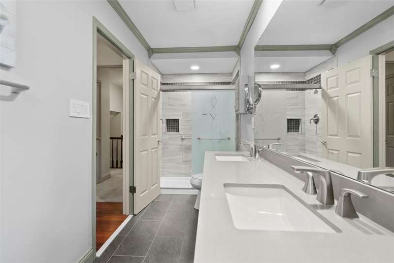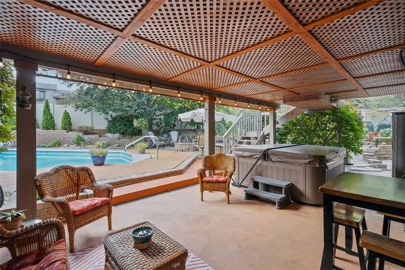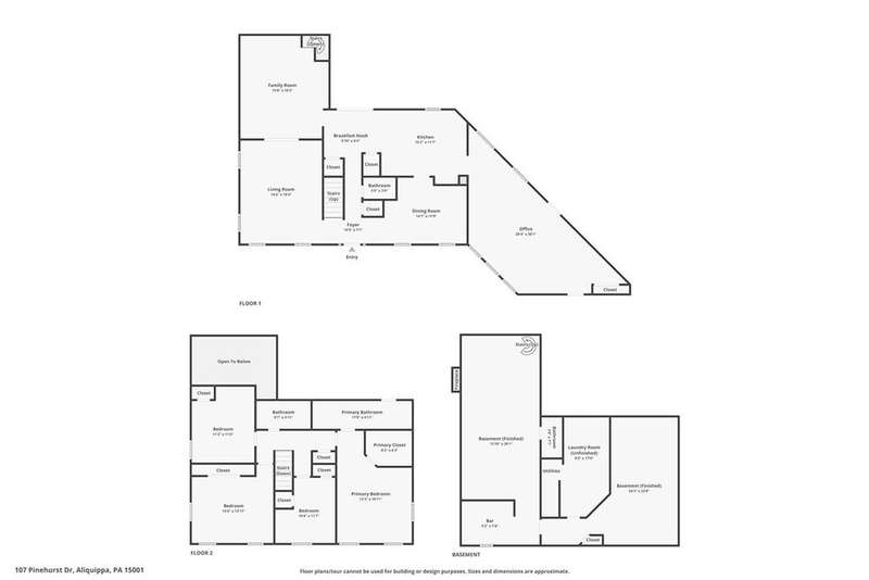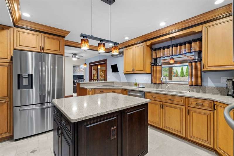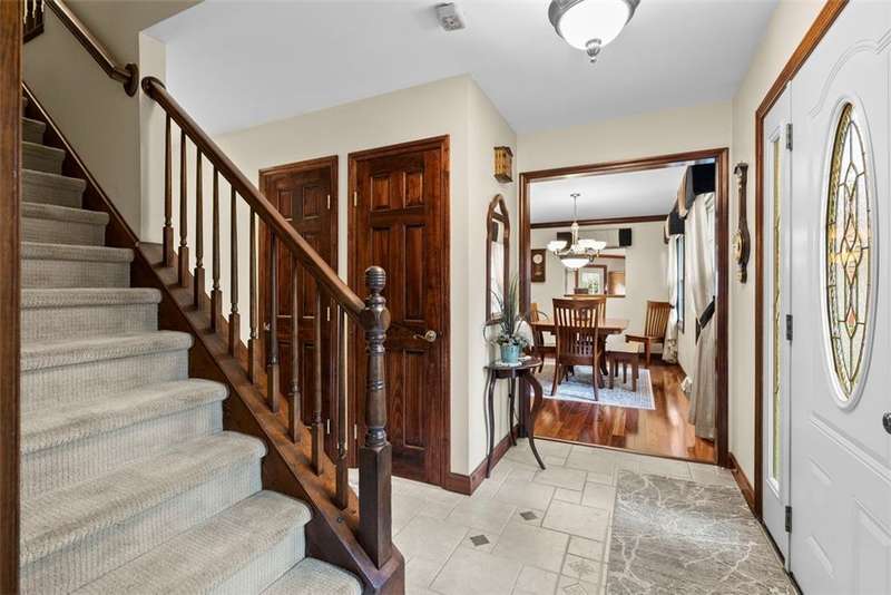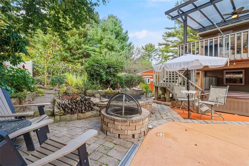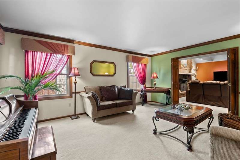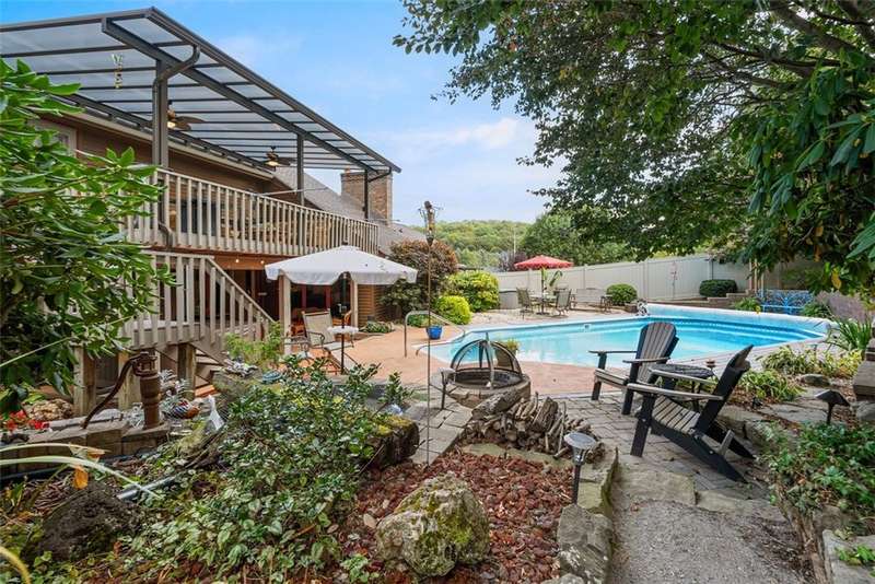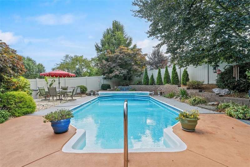 107 Pinehurst Drive ? A Once in a Lifetime Home! Nestled on a highly sought-after Center Township cul-de-sac street, this custom-built home blends timeless design with modern updates and incredible amenities throughout. The main level offers a traditional floorplan with a spacious living room, cozy family room with vaulted ceiling, gas fireplace and wet bar plus an eat-in kitchen with quartz countertops, high-end appliances including convection oven and induction cooktop and access to a fabulous patio with hot tub. A sunlit den adds the perfect retreat. Upstairs, four bedrooms include a large primary suite with walk-in closet, spa-like bath with jetted soaking tub, and access to a private covered deck overlooking lush gardens and a heated saltwater pool. The finished basement offers versatile space with wet bar and fireplace, while an oversized two-car garage with epoxy flooring and workshop completes this one-of-a-kind home. This exceptional property truly is a MUST SEE to believe!