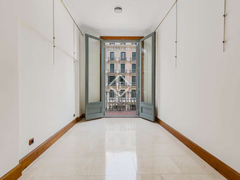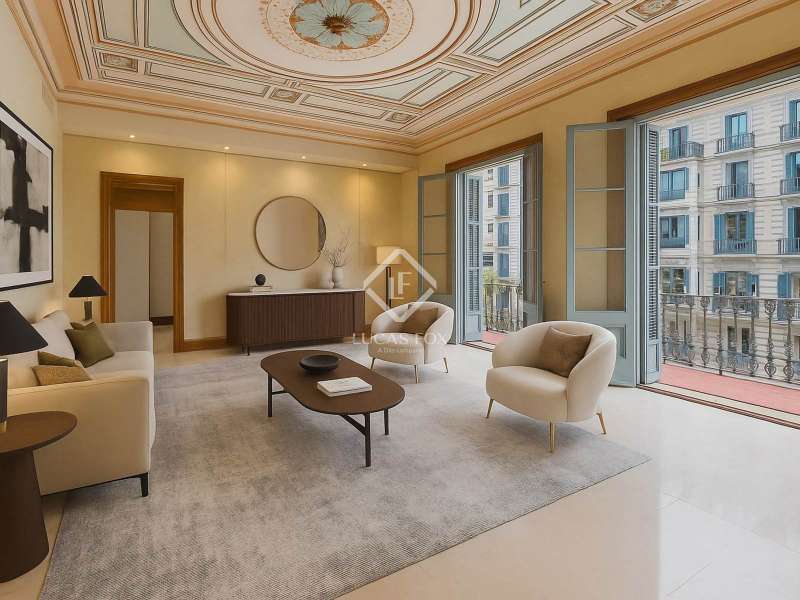 On one of Barcelona's most iconic and coveted avenues, we present this magnificent property located in a listed Modernista building , which preserves all its architectural majesty and the restored details of Barcelona's modernism. Its high ceilings with original moldings, wrought-iron balconies, and imposing façade open directly onto the vibrant Rambla de Catalunya, with privileged views of Plaça de Catalunya and the heart of the Eixample district. Just a few meters from Passeig de Gràcia, we find an exterior property with four balconies overlooking the street. Its bright and elegant spaces stand out: a spacious main living room with access to two balconies - which flood the space with natural light and offer unobstructed views of the avenue and Plaça Catalunya -, restored ceilings with original moldings - which faithfully reproduce the classic coffered ceiling of modernism -, Venetian stucco walls - which provides texture, shine and a touch of sophistication -, a large and functional kitchen perfectly integrated, separate and soundproofed dining room - ideal for private celebrations or remote work in total privacy -, three bedrooms - two doubles with built-in wardrobes of natural wood and high-quality finishes, and a third single, ideal as a youth bedroom or study-, an additional bedroom next to the entrance - currently converted into a dressing room - and two complete bathrooms with quality finishes. Beige travertine marble floors bring warmth, elegance, and coherence to any space. The fully refurbished stately La Finca features a marble-clad lobby and a lift with a restored period cabin, allowing you to appreciate the beauty and value of Barcelona's architectural heritage. A unique property for those who appreciate design, history, and luxury at their finest. Located just steps from Passeig de Gràcia, surrounded by international boutiques , signature restaurants, and iconic modernist buildings, it also boasts stunning views of Plaça Catalunya. An exceptional opportunity for those who wish not only to reside in Barcelona, but also to become part of its cultural and architectural legacy.