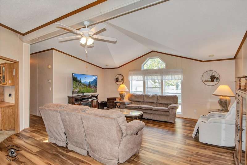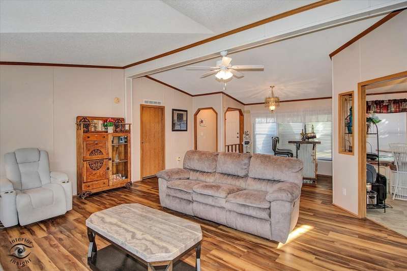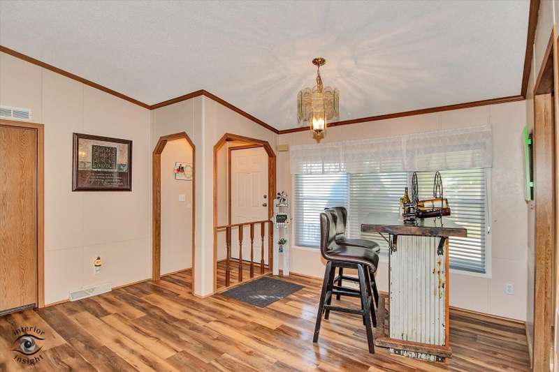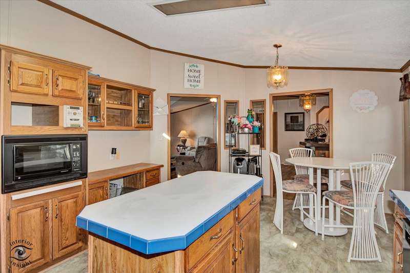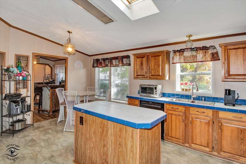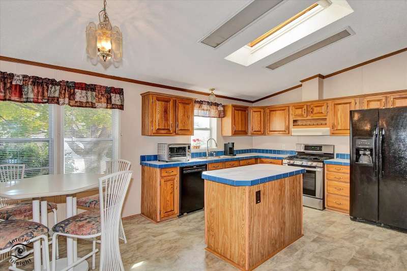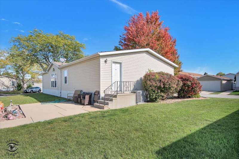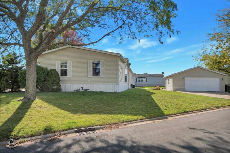 Located in the desirable 55+ Oakridge Subdivision in Manteno, this beautifully maintained double-wide mobile home offers comfort, space, and modern updates throughout. Step inside to find updated vinyl plank flooring and carpet throughout the home. The large, open family room features vaulted ceilings and seamlessly connects to the dining area and kitchen. The kitchen is filled with natural light from skylights and offers ample cabinet space, generous countertops, updated appliances, pantry and a convenient center island. The spacious master bedroom includes a large walk-in closet and a private bathroom with a relaxing soaking tub and separate shower. Two additional bedrooms offer large closets, and the separate laundry room adds everyday convenience. A built-in in-house radio system with speakers in the family room provides added enjoyment and ambiance. Outside, you'll enjoy a patio that opens to the backyard, perfect for relaxing or entertaining guests. The oversized 2.5-car detached garage provides plenty of room for vehicles, storage, or a workshop. Major mechanicals have been thoughtfully updated, with a new hot water heater installed within the past year and both the furnace and AC unit replaced in the last five years. As a resident of Oakridge, you'll also have access to a beautifully maintained clubhouse and all the benefits of living in a friendly, age-restricted community. This move-in ready home is a rare find-don't miss your chance to make it yours!