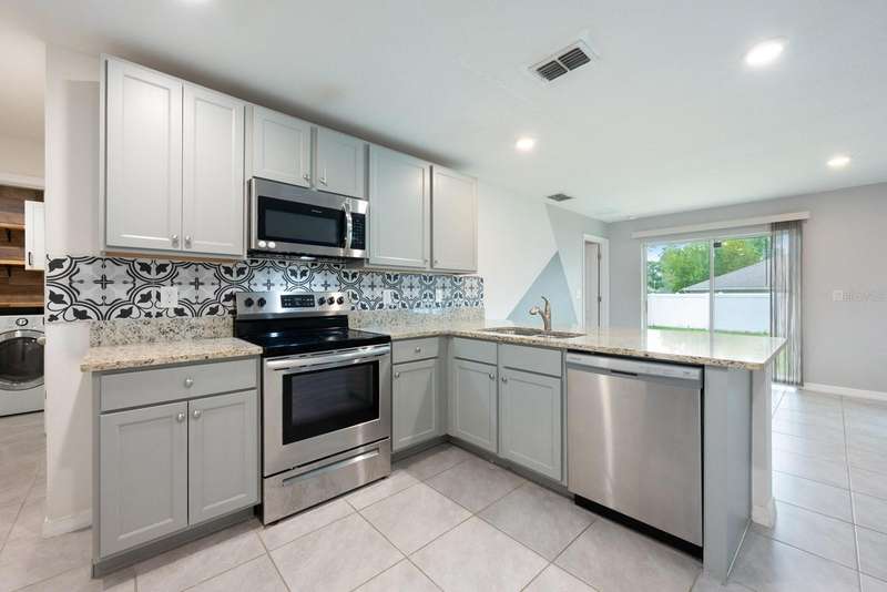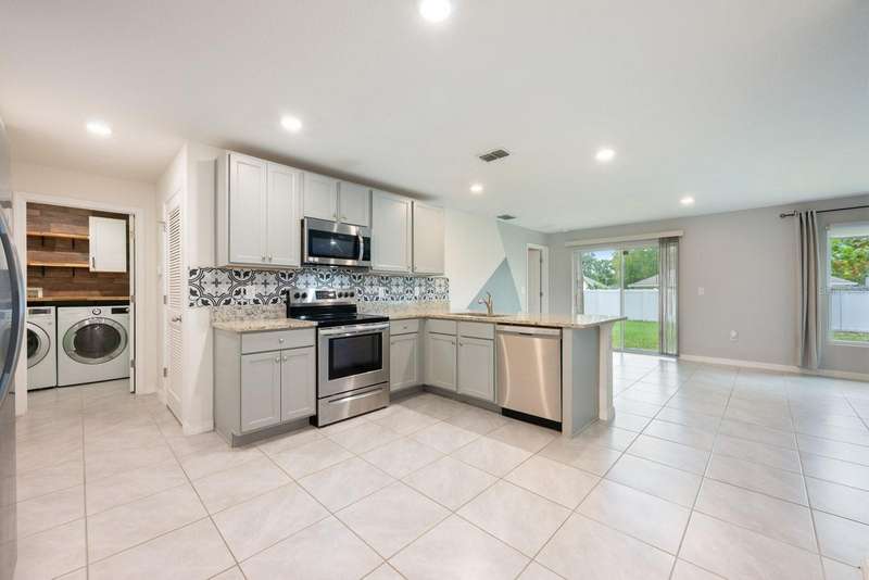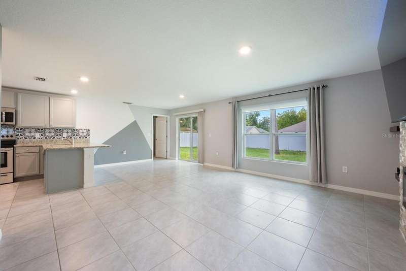 **SELLER MOTIVATED!!** Welcome to this inviting 3-bedroom, 2-bath home, built in 2020 offering the perfect blend of modern design, energy efficiency, and everyday functionality—all with NO HOA and situated on an oversized lot in a prime Deltona location! Step inside the popular Dakota floor plan and be greeted by a light and bright open concept layout where the kitchen, dining, and living room flow effortlessly together. Ideal for entertaining or simply enjoying daily life, this layout offers tile flooring throughout the main living areas, creating a cohesive and low-maintenance space. The modern kitchen is sure to impress with granite countertops, stainless steel appliances, a stylish updated backsplash, and a spacious breakfast bar. The open living area features a custom built-in fireplace, adding warmth and a stylish focal point. Tucked away for privacy, the primary suite offers a relaxing retreat with a private en-suite bath, while two additional bedrooms share a second full bath—perfect for family or guests. You’ll also love the updated laundry room, energy-efficient windows, and solar system that help keep utility costs low. Step outside to enjoy your fully fenced, oversized backyard complete with storage shed and firepit with enough space for a garden, play space, pool, or anything else to fit your needs. Enjoy easy access to Lake Monroe, local trails, parks, shopping, and more—all while living fee-free with no HOA restrictions. Don’t miss your chance to own this move-in-ready home with thoughtful upgrades in a growing Central Florida community. Schedule your private showing today!
