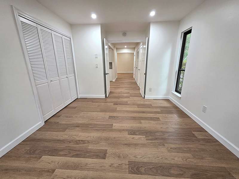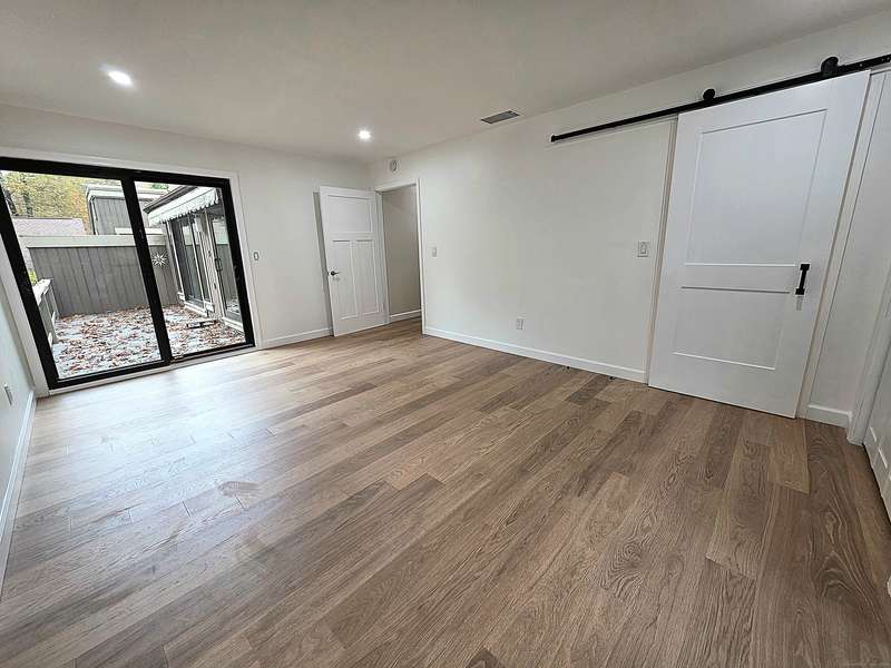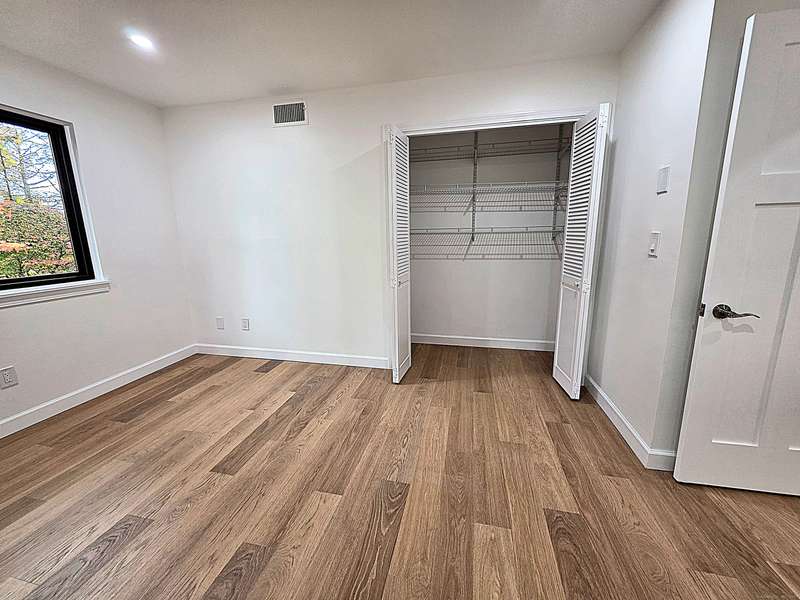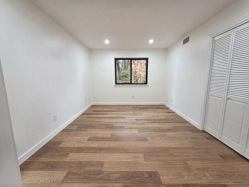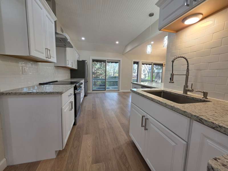 The short, gently sloping walkway ends at your condo, making this a very private location w/ green space in the side and backyards and the 110 acre nature preserve just over the hill. The first thing you'll notice when you enter the condo, is the kitchen wall was opened to provide easy access when you bring in your groceries and views to the green space out back, while still retaining enough wall space to create a dramatic formal entry. The front to back living room flows into the kitchen to create a contemporary feeling & an open floor plan for easy entertaining. 2 sliders create a wall of glass leading to the private deck with awning. The primary bedroom has its own slider, newly built additional closets and access to the remodeled dressing room and full bath. The low step shower was expanded without sacrificing closet space in the 2nd bedroom, which could also be a sweet den or office. Vinyl plank flooring throughout. Energy efficient double pane sliders & windows & a newer, recentl