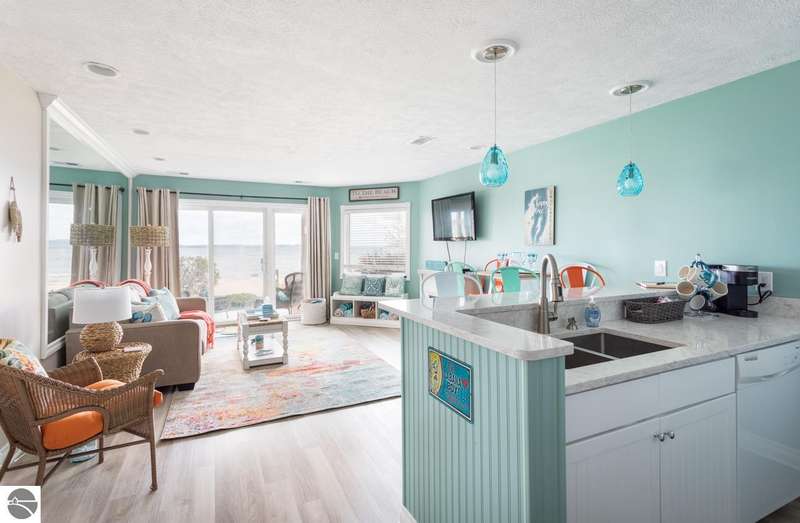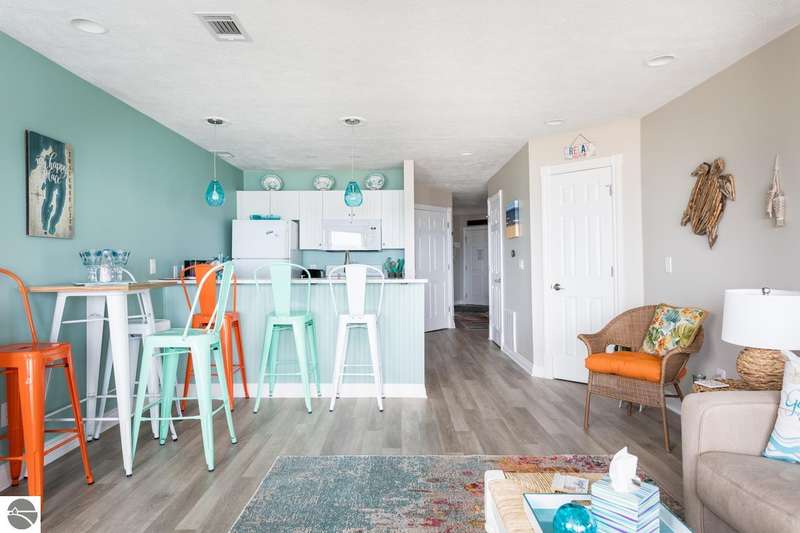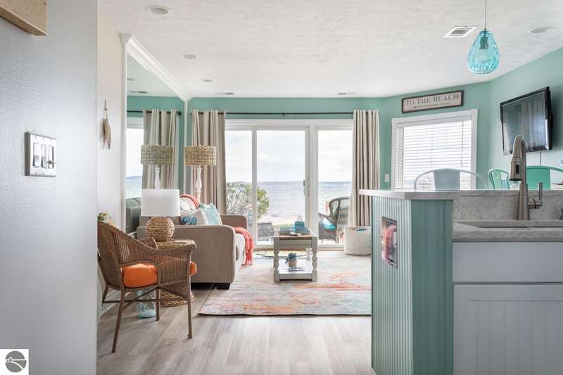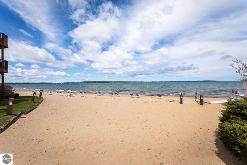 Nestled on the coveted "Miracle Mile" beach, this fully furnished, turn-key, beachfront condo offers the perfect combination of relaxation and investment potential. Located on the pristine shores of East Bay, this condo provides breathtaking bay views, direct walk-out access to the white sandy beach, and it's unbeatable location in Traverse City. "The Beach Condominiums" offers resort style amenities, including a sandy beach area, heated pool, and a hot tub. Unit 108 next door is also available for purchase offering a rare opportunity to have a door installed between them connecting the two units. This unit sleeps up to five. The kitchen and bathroom were completely gutted in 2022 and had a new water heater installed.