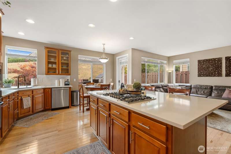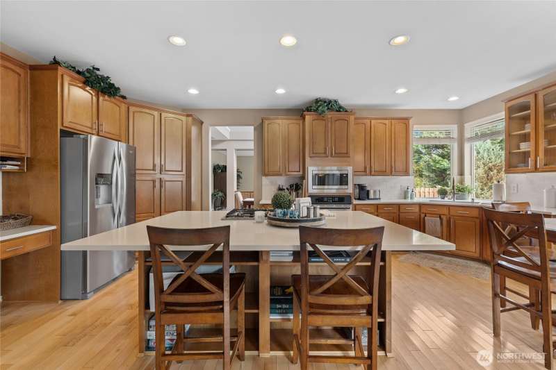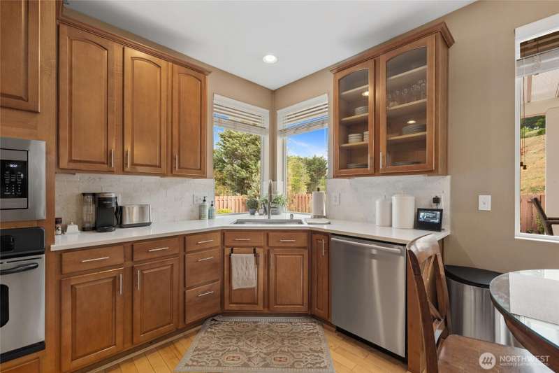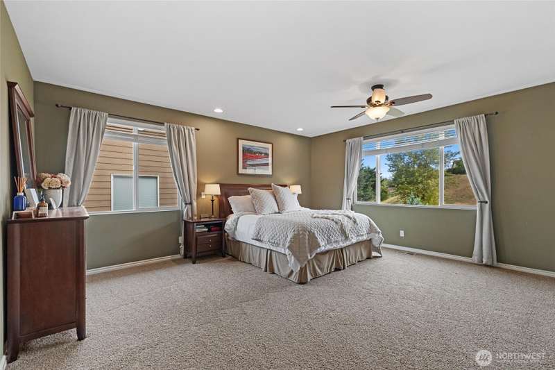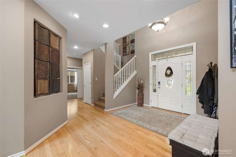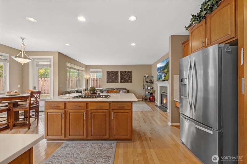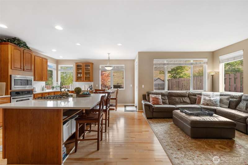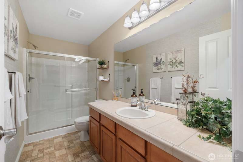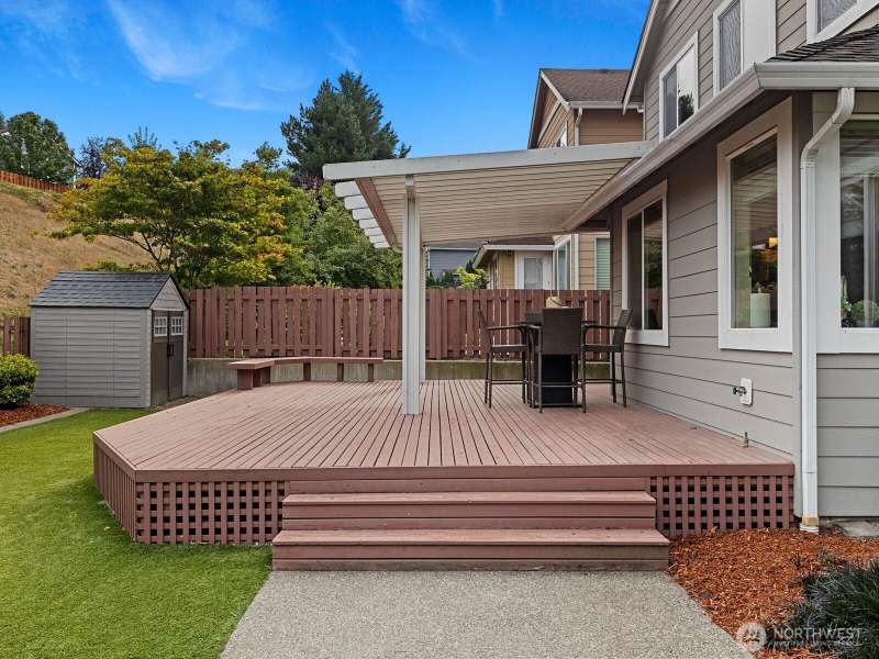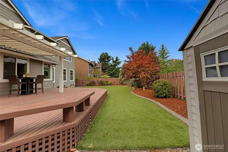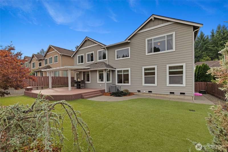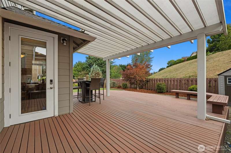 Lovingly maintained home in sought-after Maple Woods! This generous 5 bed, 2.75 bath floorplan offers space you'll never outgrow. The entry welcomes you with soaring ceilings filling the home w/natural light. Updated kitchen features quartz countertops, tile backsplash, & stainless appls. Main-floor bedroom with ¾ bath is ideal for guests. Upstairs you’ll find three additional bedrooms, expansive bonus room, & a luxurious primary suite complete with two walk-in closets & a spacious ensuite bath. Additional highlights include hardwood floors, central A/C, front-yard sprinkler system, & ample storage. Fully fenced backyard features a large deck, covered patio, low-maint turf & shed. Brand new roof with warranty. Amazing place to call home!