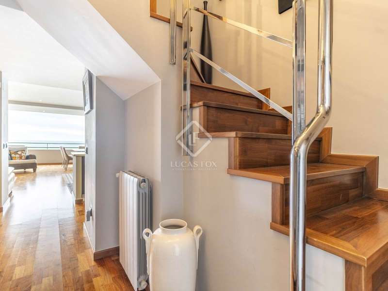 This spectacular beachfront penthouse is a unique opportunity for those seeking a one of a kind property, with stunning views of the Mediterranean and all the amenities of a high-end residential complex. On the main floor , the property offers a spacious and bright living room with large windows that flood the space with natural light and provide uninterrupted views of the sea. The modern and fully equipped kitchen is the perfect place for food lovers. This level also features a bedroom , ideal for guests or as a versatile space, next to a guest toilet. The upper floor is designed as a truly private retreat. The main bedroom enjoys a terrace with ocean views and a private Jacuzzi, as well as an en suite bathroom and a spacious dressing room. A second bedroom with its own dressing room and full bathroom complete this floor. In the attic, an elegant office or library offers the perfect environment for teleworking or reading, always with plenty of natural light. The property is part of an exclusive gated complex that guarantees privacy, 24-hour concierge service, and a carefully curated environment. Its communal areas include three swimming pools, two paddle tennis courts, and spacious relaxation areas. The penthouse includes a closed garage and a generous storage room, adding practicality to comfort.