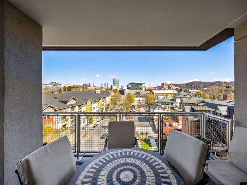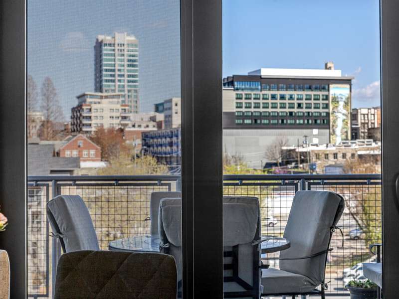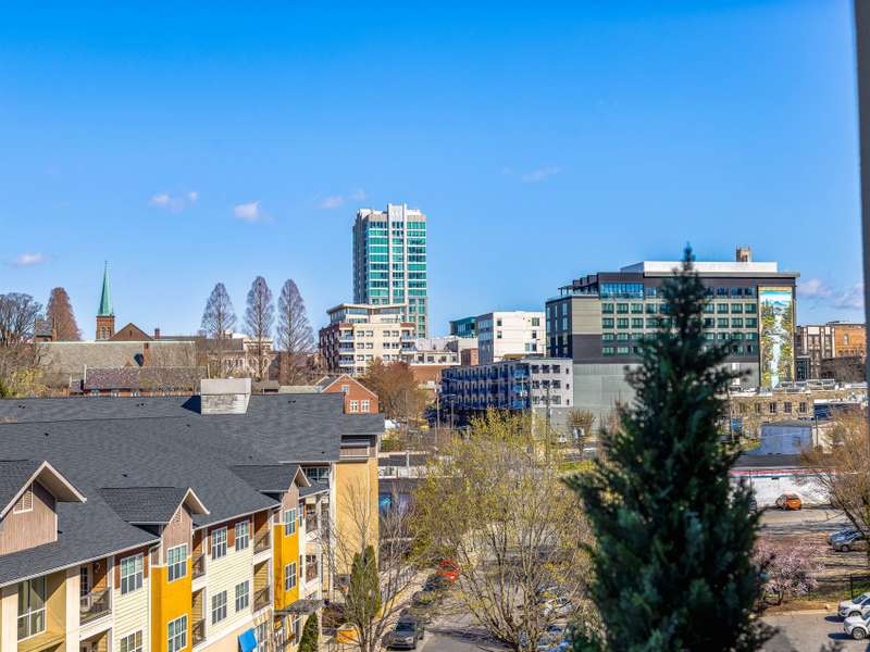 6TH FLOOR UPTOWN VIEWS & MT PISGAH & 2 PARKING SPACES! Experience modern mountain luxury in the heart of vibrant Downtown Asheville from this first time offered, North facing home with unobstructed views of Uptown Asheville. This two bedroom split plan/two full bath condominium at 145 Biltmore offers stunning uptown and mountain views from the 6th floor. Enjoy a spacious wraparound balcony/deck plus two Juliette balcony's, perfect for soaking in the scenery, including Mt. Pisgah. Imagine the Downtown twinkle of lights, mountain views and overlooking some of Asheville's most historic homes. The well designed open-concept layout features one-level living, a private primary suite, dining area, generous storage, and two gated garage parking spaces?rare in downtown. Step outside to Asheville's finest restaurants, breweries, shops, arts, and entertainment. Luxury, location, and lifestyle await!