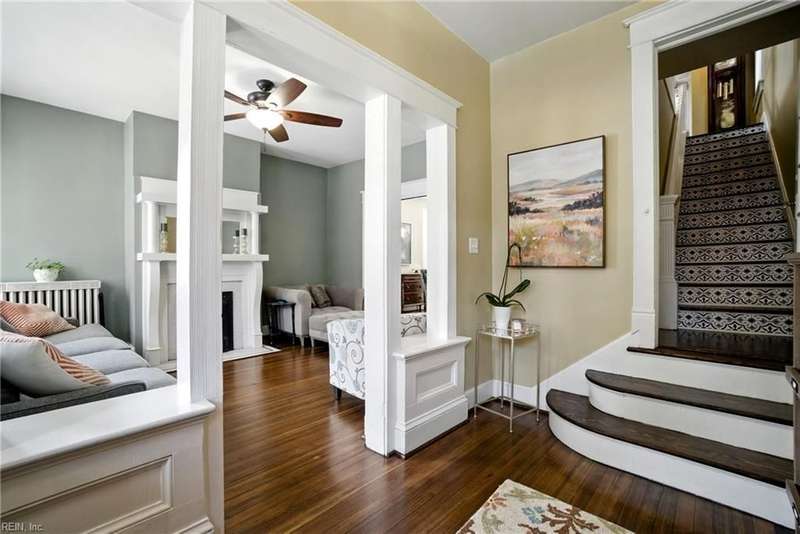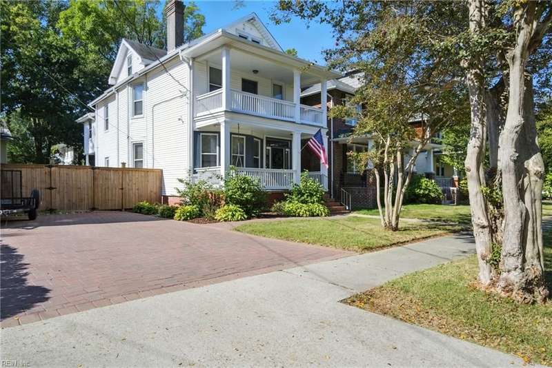 Beautifully updated and spacious, this 4?5 bedroom, 2.5-bath home in sought-after Colonial Place sits on a rare, oversized lot. A perfect blend of historic charm and modern comfort, it features gorgeous wood floors, a renovated kitchen, and a first-floor full bath. The inviting primary suite offers a private balcony overlooking crape myrtle-lined sidewalks. The finished third-floor bonus room adds flexible living space for guests, office, bedroom, or playroom. Enjoy outdoor living on the newer paver patio, plus a large shed for storage. With many updated windows, a dedicated laundry room, and off-street parking for 4+ cars, convenience meets character throughout. Located just blocks from North Colley dining, ODU, the Lafayette River, and just minutes to downtown or the beach?this is classic Colonial Place living at its best. No flood insurance required.