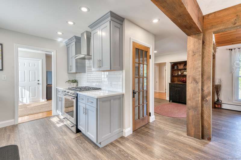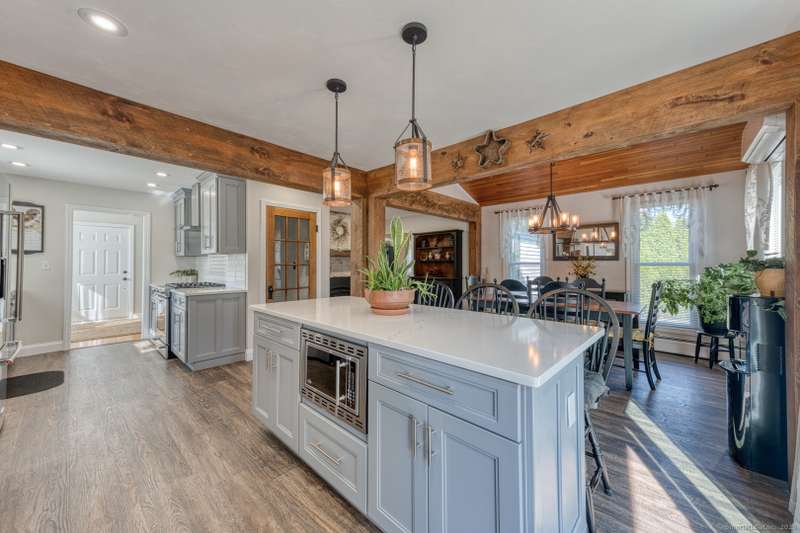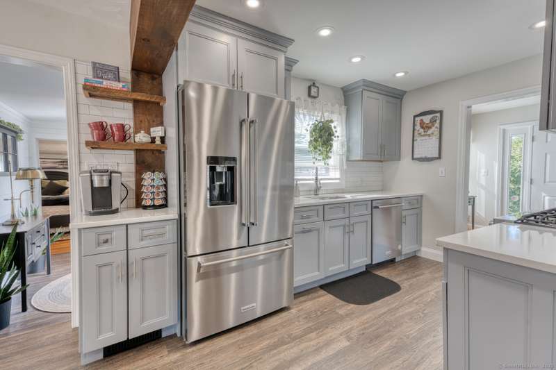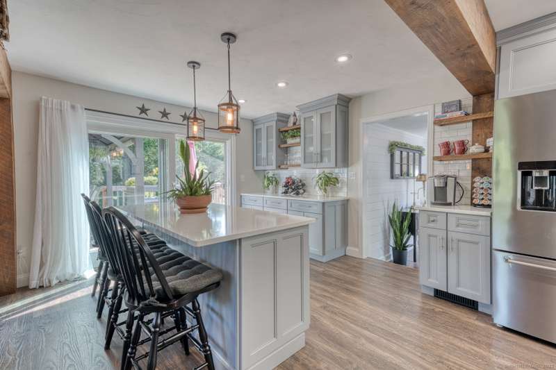 Move-in ready. Freshly painted and updated. Come see this beautiful ranch house and enjoy single floor living in a quiet neighborhood. A quick walk to Norton Park. This 3-bedroom home has an updated expansive kitchen with new upscale stainless steel appliances and a dining area with a fireplace that was made for entertaining! At 1,687 square feet, it is larger than a typical ranch. This home boasts 3 bedrooms, 2 updated full baths - one an on-suite to the oversize primary bedroom with a walk-in closet. Quartz countertops, multiple banks of cabinets, and an oversized kitchen island offers storage you will struggle to fill. The newer (2022) high efficiency natural gas boiler provides economical heating and unending hot water. Two splits for heat and AC provide year-round comfort. Enjoy nearly 1/2 acre of level rear yard with privacy fencing and a row of 10-12 feet pine trees. Curb appeal is enhanced with nicely landscaped front and side yards. A series of decks and patios is accessible v