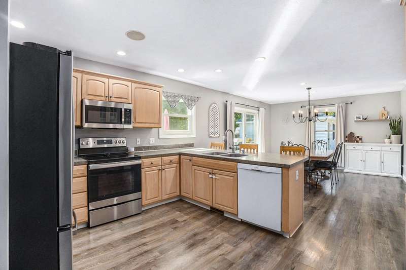 Meticulously maintained 4 bedroom, 3.5 bath home in the City of Walker. Main floor open concept layout, spacious living room with bay window and a floor plan that flows easily. Durable luxury vinyl flooring in the dining and kitchen areas. New sliders and windows throughout w/ 20yr warranty. Furnace and a/c were replaced in 2023. Large kitchen with pantry and snack bar. Main floor laundry. Attached 2 car garage has extra storage space and 3rd garage door off back side of the house. Upstairs has primary suite with fantastic walk-in closet, 2 additional bedrooms and another full bath. Downstairs offers a huge finished family room, additional bedroom, under-the-stairs storage and full bath. Fenced in back yard offers new deck with Trex composite decking and hot tub. What's truly nice is the second 2 car garage. Garage is insulated, has concrete floors, heat, water hookup and electricity. Desirable location w/ easy access to downtown GR, highways, school campuses and more.