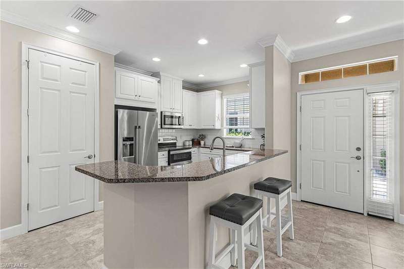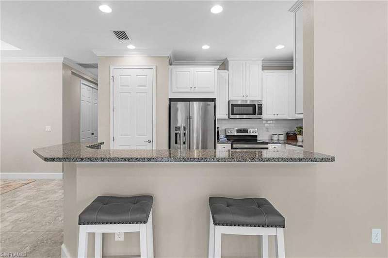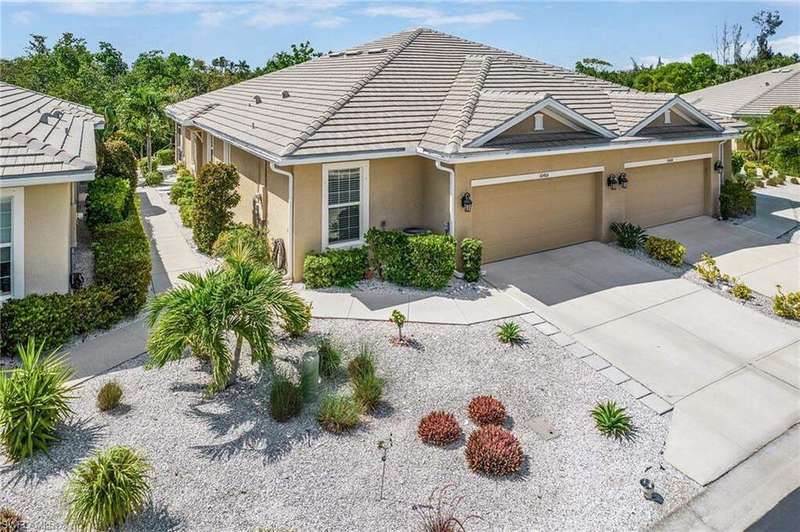 Immaculate Villa Near Beaches - No Storm Damage - Certified & Move-In Ready! Welcome to this stunning 2-bedroom + den, 2.5-bath attached villa nestled in the highly desirable Lucaya Community-one of the best locations in Fort Myers! Situated on a peaceful cul-de-sac and just minutes from Fort Myers Beach, Sanibel Island, shopping, dining, and RSW Airport, this home offers the perfect blend of comfort, style, and convenience. NO storm damage or flooding. Inspected and certified for peace of mind. Step inside to find a meticulously maintained home that shows better than a model, featuring luxury upgrades throughout, including: Screened-in garage, Epoxy garage floor, Granite countertops, Whole-house water filtration system, Tile flooring throughout. The open-concept layout offers plenty of natural light and a neutral palette that brings calm and comfort. Enjoy your mornings or evenings on the serene screened-in lanai, overlooking a lush nature preserve filled with native birds, butterflies, and wildlife. The spacious owner's suite is a true retreat with elegant crown molding, coffered ceilings, a walk-in closet with custom storage, dual sinks, and a large walk-in shower. A private guest suite is located on the opposite side of the home with its own full bath, providing space and privacy for visitors. The versatile den is ideal for a home office, hobby room, or extra sleeping space. The kitchen features white cabinetry, stainless steel appliances, a double oven, and a generous pantry-perfect for entertaining or everyday meals. Lucaya offers resort-style amenities including a tropical swimming pool & hot tub spa, a Modern fitness center, a Poolside BBQ area and cabana, Scenic walking paths throughout the community, all with a Tropical Island feel. This pet-friendly community is beautifully maintained and ideal for both seasonal and full-time residents. Don't miss this opportunity to own the best villa in the best location of Fort Myers. Experience the Florida lifestyle at its finest!