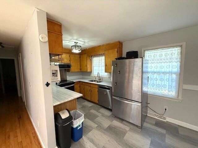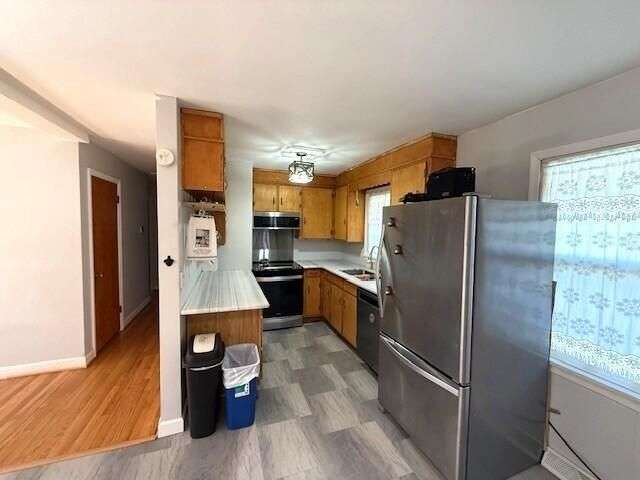 This beautifully updated brick ranch is a must-see, offering 3 bedrooms, Renovated bath with new tile floors, tile shower. New half bath in 3rd bedroom. The home features refinished hardwood floors throughout the main level, complemented by brand-new windows in sunroom that fill the space with natural light. The kitchen boasts new flooring and elegant marble countertops, stainless appliances, while the sunroom provides a perfect retreat with new flooring and a freshly installed door. The living room is enhanced with remote blinds for added convenience. Additional upgrades include a new roof, AC and heating system within the last four years including duct work, in addition to an updated electrical box and wiring, and improved attic insulation for energy efficiency. Tilt-in windows on