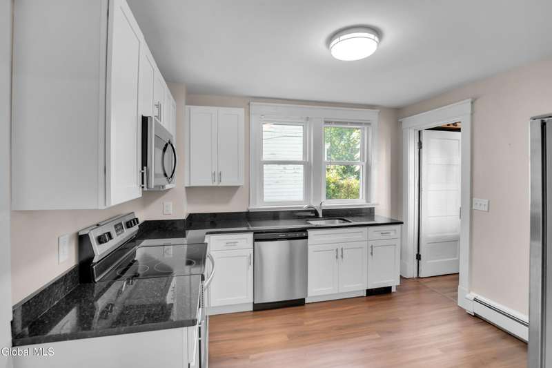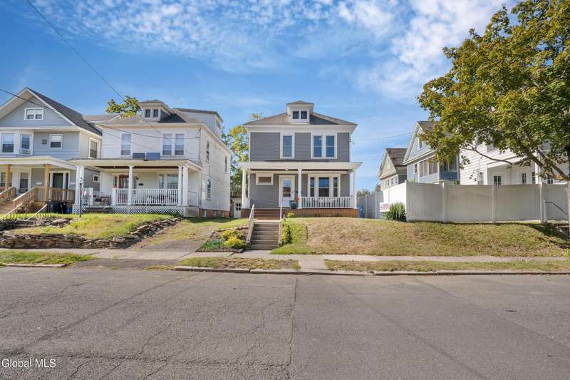 PRIME LOCATION in Pine Hills! Move-In Ready Gem! Minutes from colleges, hospitals and Washington Park. This beautifully updated 2-story home offers the best of city living - walkable to restaurants,movie theater, grocery stores, and more! Step inside to find gleaming hardwood floors and extended-height ceilings that highlight the open-concept first floor. The modern kitchen, updated within the last 5 years, features granite countertops, stainless steel appliances, and flows seamlessly into the living space. The full bath has been stylishly renovated with ceramic tile flooring, new vanity, and toilet. Freshly painted throughout, this home boasts a wall-mount, energy-efficient on-demand heating system, upgraded electrical, a newly added half bath on the first floor, double-pane windows with full screens(2022), an on-demand hot water system, and three heat pumps(mini-splits) providing climate-controlled heating and cooling through out the year. Relax outdoors on either of the front or rear sitting porches. Off-street parking is an added bonus in this city location.Truly nothing to do but move in and enjoy modern comfort in a prime walkable neighborhood!
