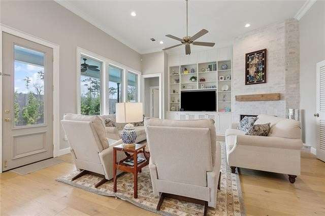 Expect to be impressed when you enter this 3 yr old home located in gated River Club Subd! This beautiful one-story home boasts 4 bedrooms/3 full baths; gorgeous entry hallway with arched openings; wood floors in all living areas; stunning kitchen with large island, beautiful backsplash, stainless appliances including built-in refrigerator/freezer and large walk-in pantry; Quartz countertops in kitchen, all baths, computer desk, laundry room and mudroom area; large den with corner brick fireplace with beam mantle; built-ins in den with cabinets to the ceiling; plate glass windows in dining room and den overlook the large covered patio and inground pool with chiller and heat pump. Don't miss the oversized garage: 900 sf insulated garage with HVAC and separate walk-in storage closet, Ninja coating on garage floor, hot and cold water taps, 220V outlet for tools or electric charger! Avg electric bill is $190. Subdivision has a marina with boat slips available for a separate fee + 1 mile nature trail. Flood Zone "C".